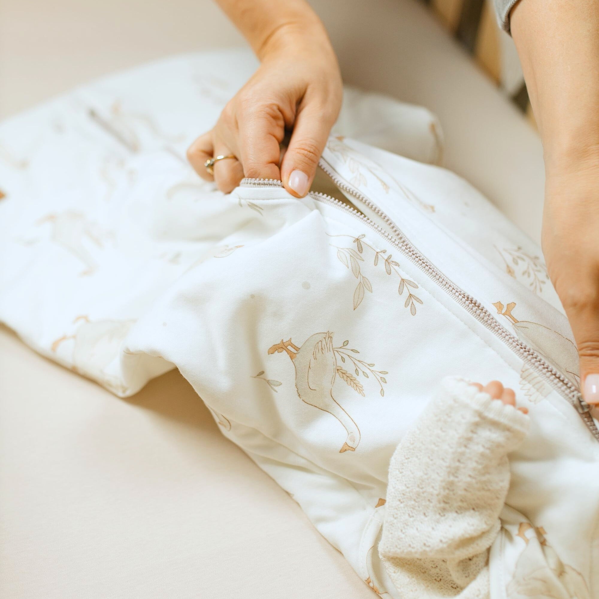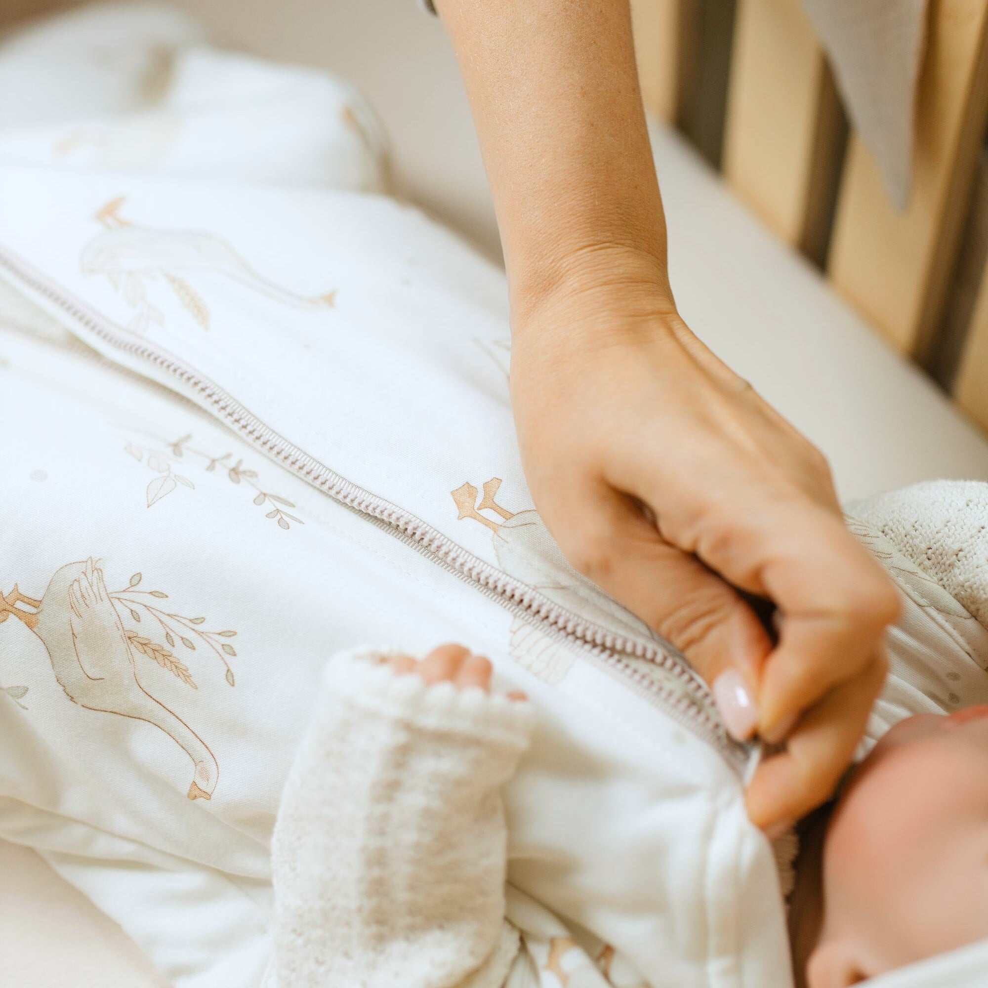 2. Exceptional practical design and details selected with the utmost care. With care and utmost attention we developed for you the unique shape of our sleeping bags and selected all the accessories. We took care of the right width, so your little one can feel comfortable. We added a practical zipper that does not contain harmful nickel and shielded it under the neck to protect the baby’s delicate skin.