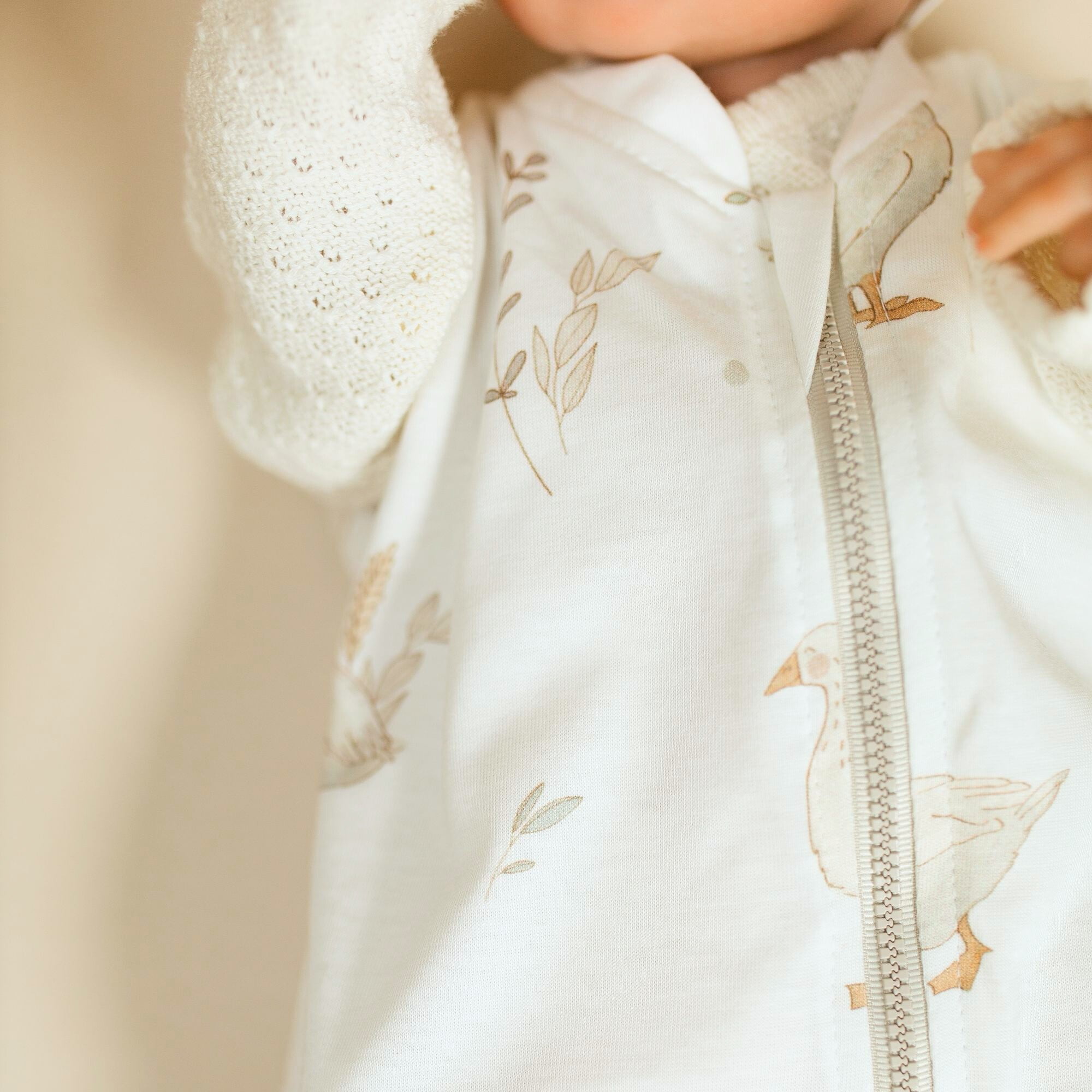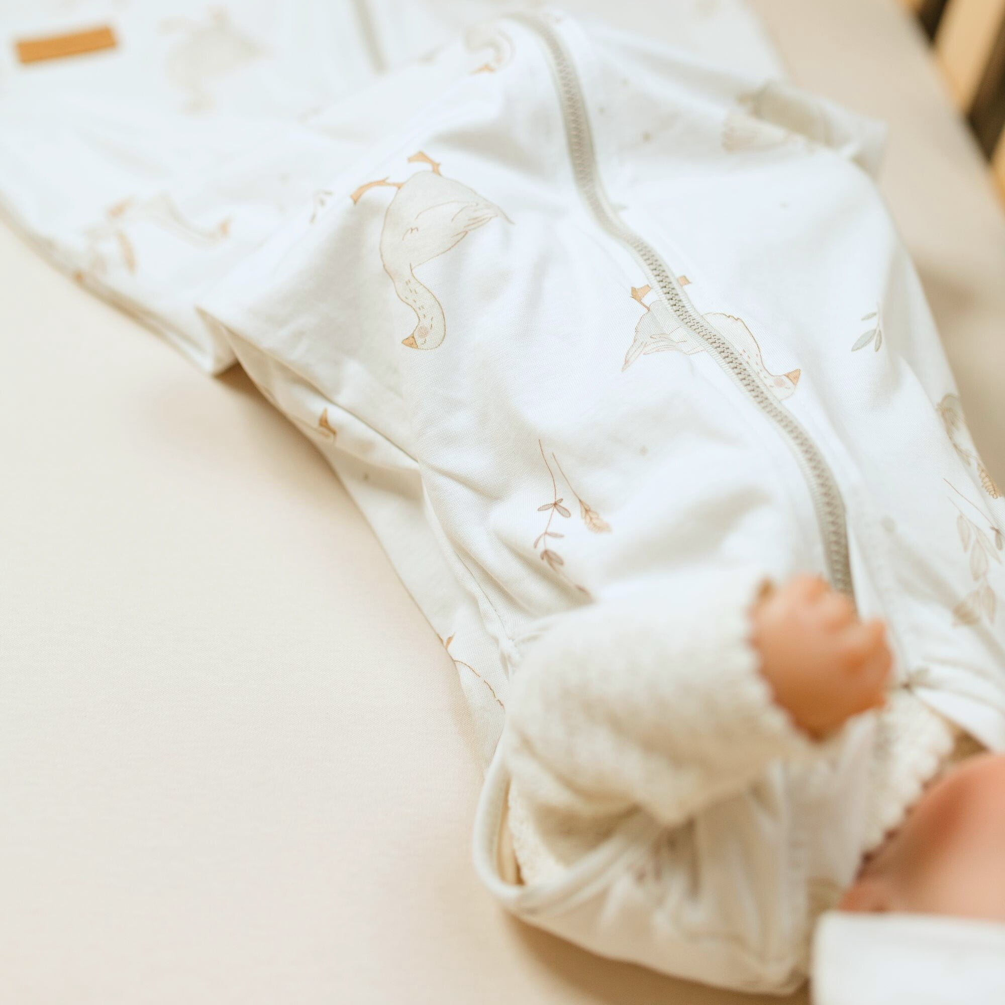 1. The highest quality materials for the perfect sleep of your little one. The soft 100% cotton knit fabric we use to sew our baby sleeping bags will naturally and gently wrap your baby’s sensitive skin. It is certified, manufactured for us in Poland and meets EU safety standards for babies’ skin. We filled the sleeping bag for you with anti-allergenic warm fleece. All this to keep the baby warm and soft in our sleeping bag.