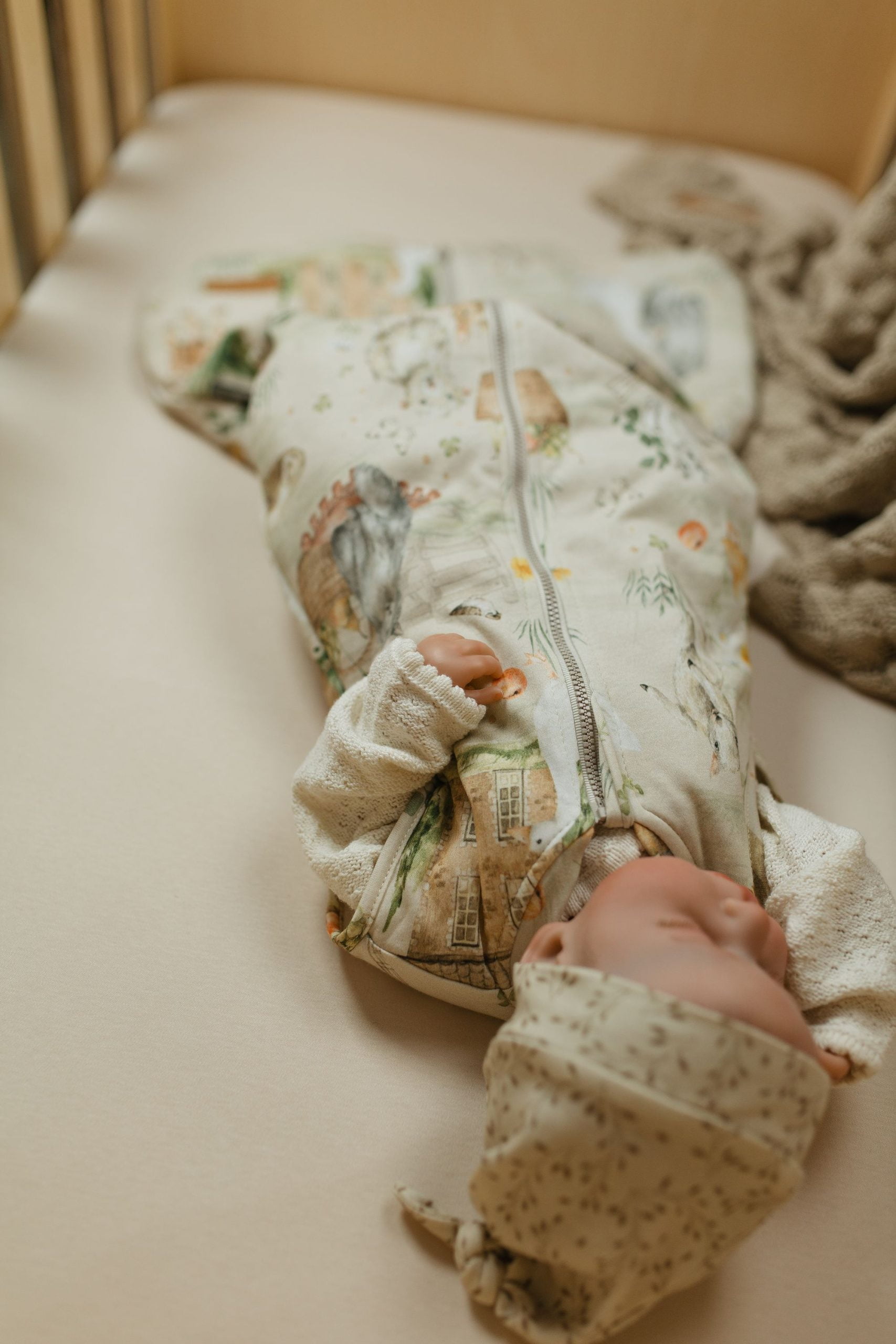 Additionally, the protective zipper cover on the inside gently shields your little one’s skin, while the outer flap covers the zipper at the neckline — ensuring both maximum safety and a beautifully finished look of the sleeping bag.