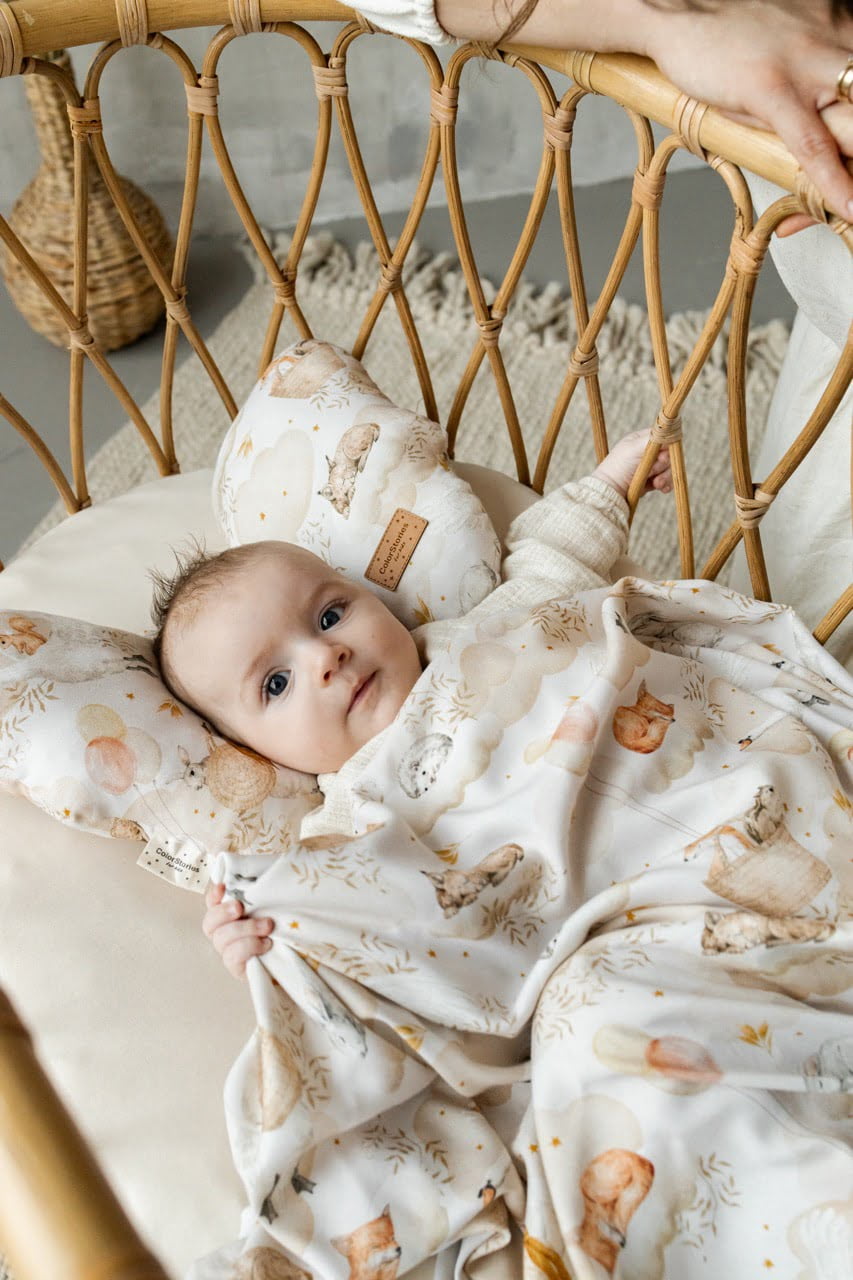 Bamboo muslin swaddle – velvety soft touch for the delicate skin of the baby.  Perfect from the first days!