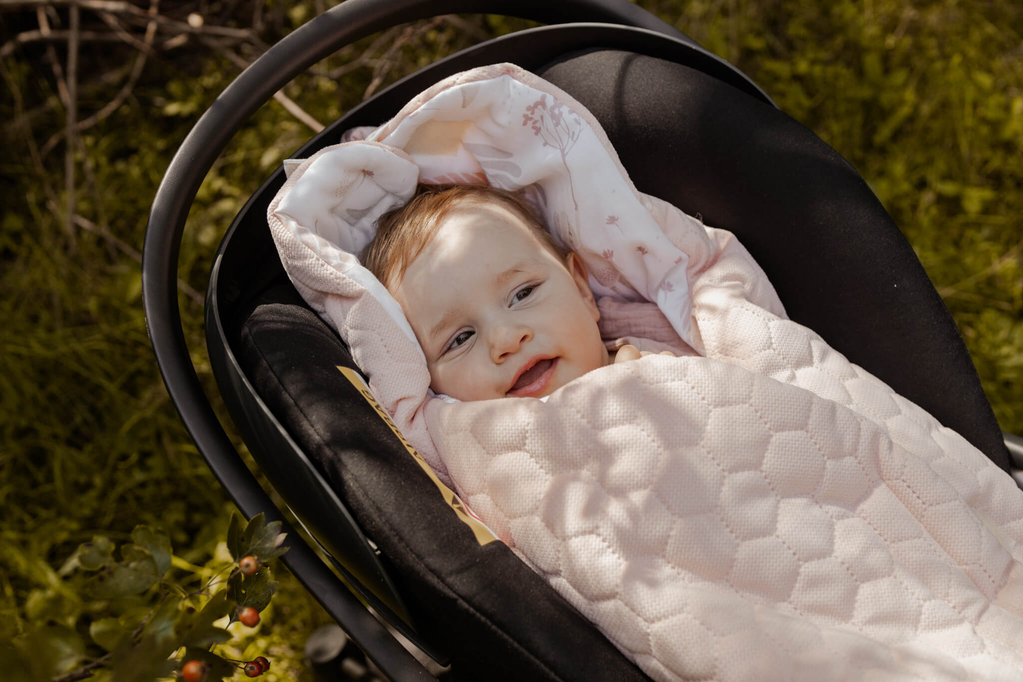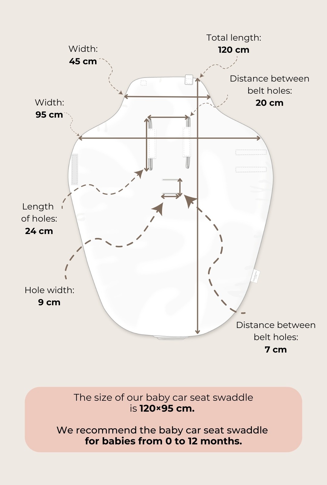 We have created our car seat blanket for the youngest travelers aged 0 to 12 months. We have adapted the belt openings to fit successive car seat sizes as well as the pushchair.