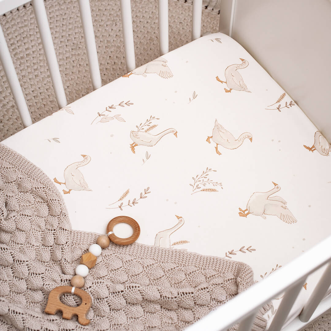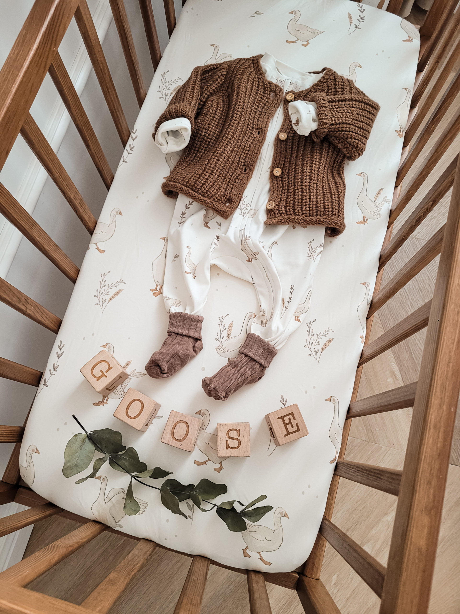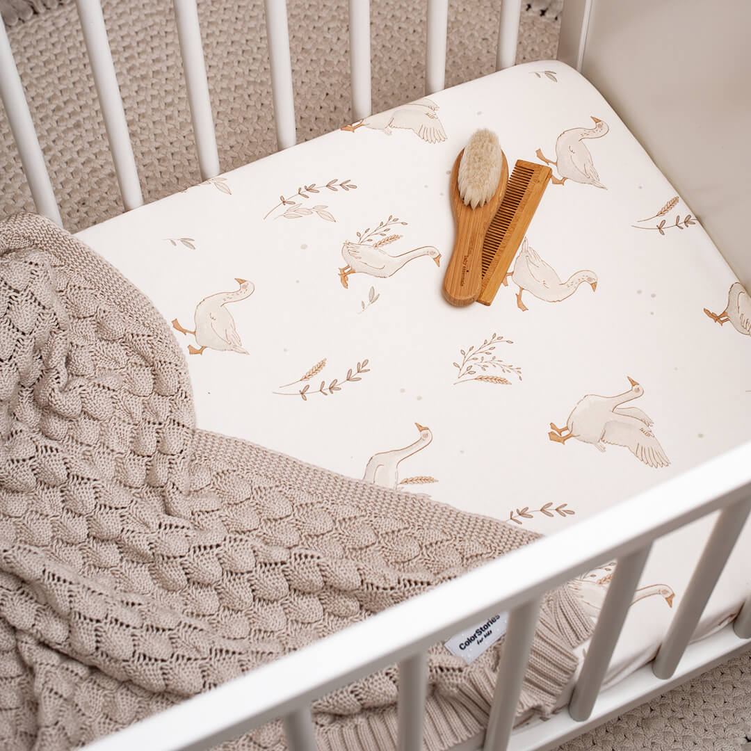 4. It perfectly matches the bedding, adding charm and coziness. That’s not all! Our sheet perfectly matches our bed sheets, creating a perfect composition that will add charm and coziness to your baby’s crib.