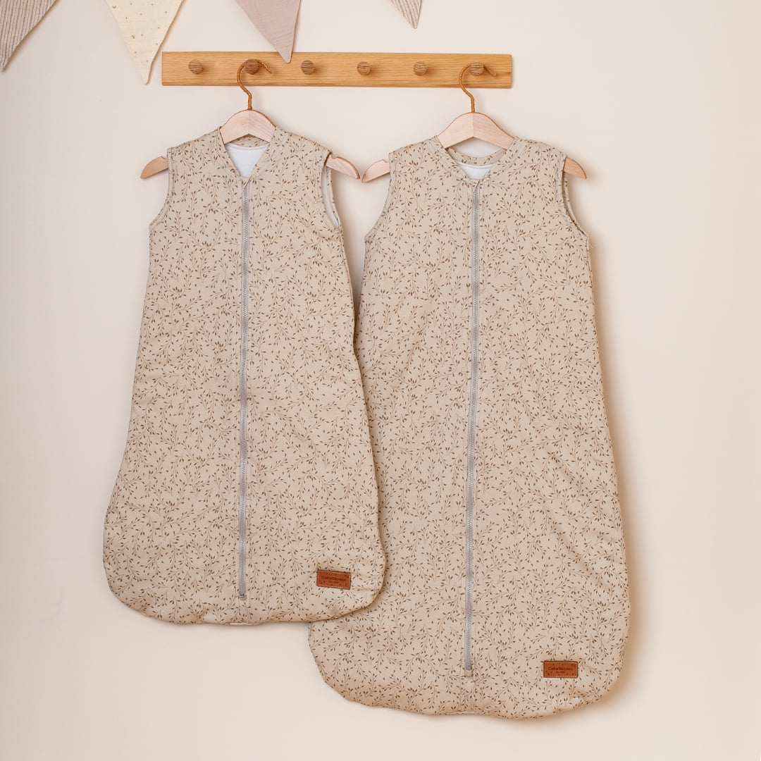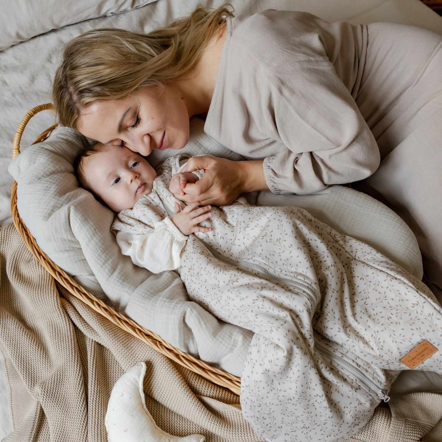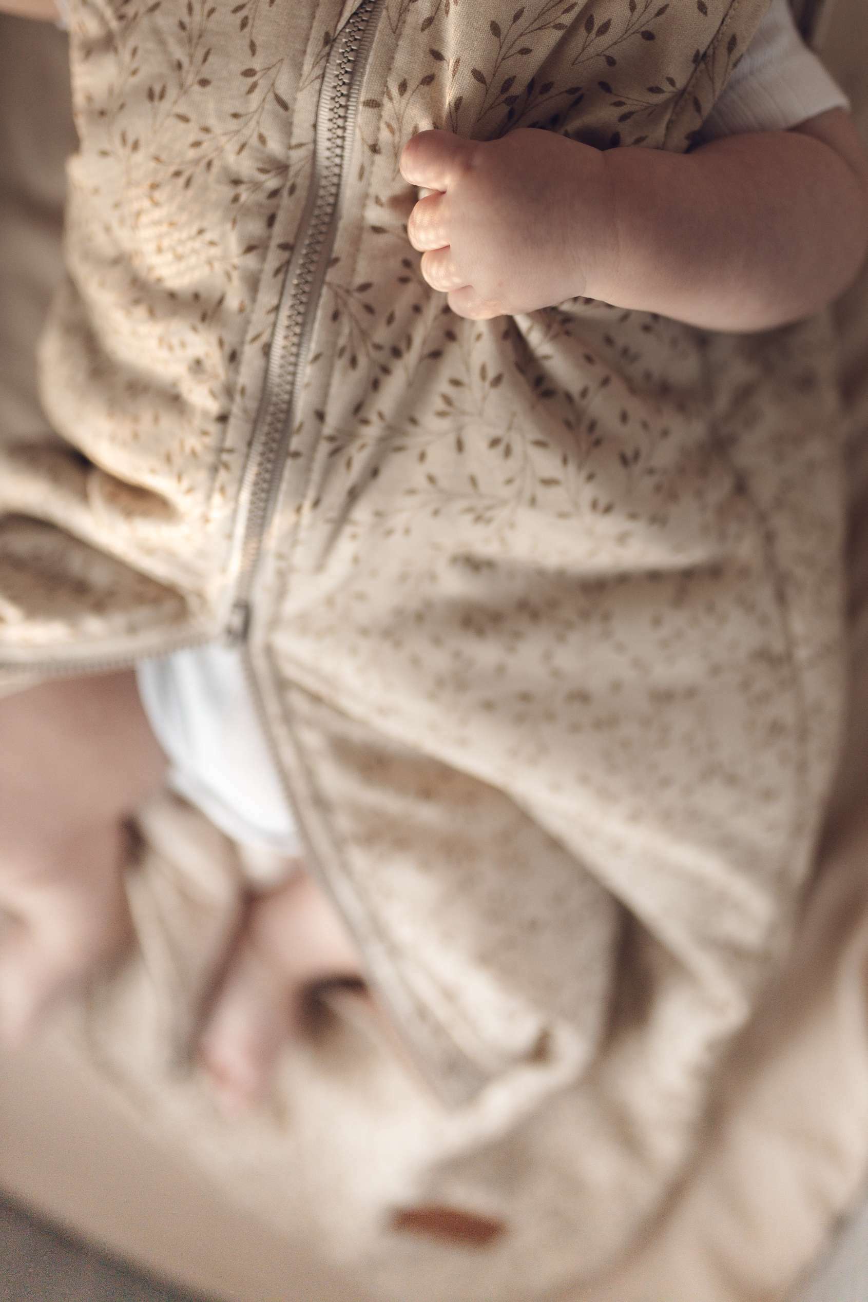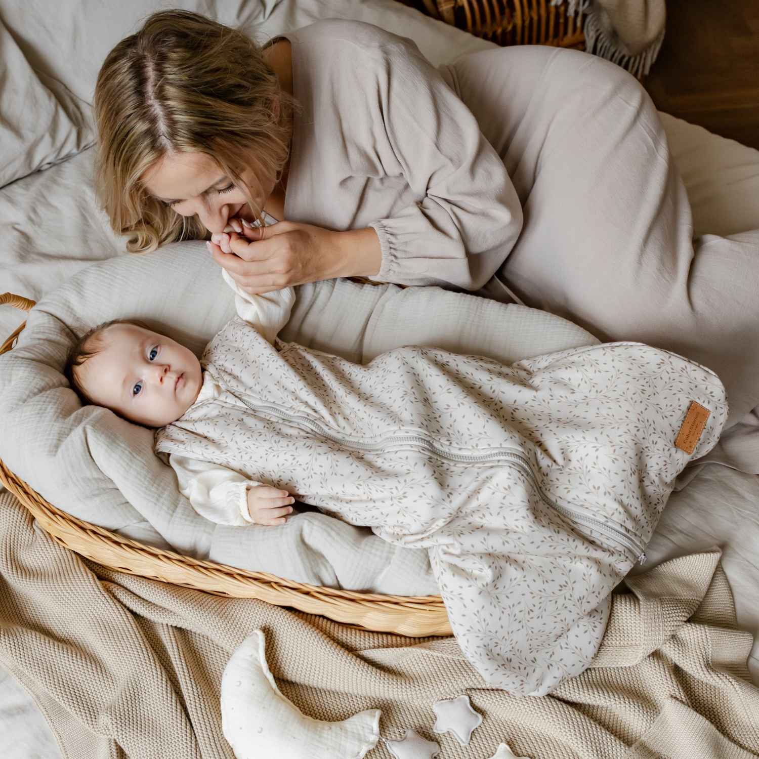 Our baby sleeping bag has been designed to provide your little one with not only warmth, but also complete freedom of movement. The downward-facing cut of the infant sleeping bag allows your little one to move their legs freely, which is essential for their healthy development. Thanks to the zip, which can be completely unzipped along its length or only partially unzipped from the bottom, the baby sleeping bag also makes it easier to change the baby at night without having to completely rouse the baby. Thanks to its natural stretchiness, the cotton we use to sew our sleeping bags is flexible, follows the baby’s movements and does not restrict his freedom of movement while sleeping.