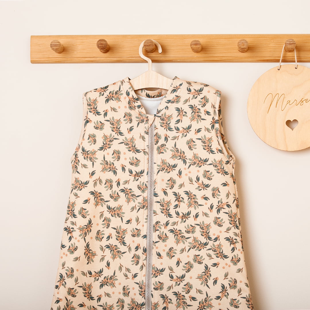 Our baby sleeping bag has been designed to provide your little one with not only warmth, but also complete freedom of movement. The downward-facing cut of the infant sleeping bag allows your little one to move their legs freely, which is essential for their healthy development. Thanks to the zip, which can be completely unzipped along its length or only partially unzipped from the bottom, the baby sleeping bag also makes it easier to change the baby at night without having to completely rouse the baby. Thanks to its natural stretchiness, the cotton we use to sew our sleeping bags is flexible, follows the baby’s movements and does not restrict his freedom of movement while sleeping.