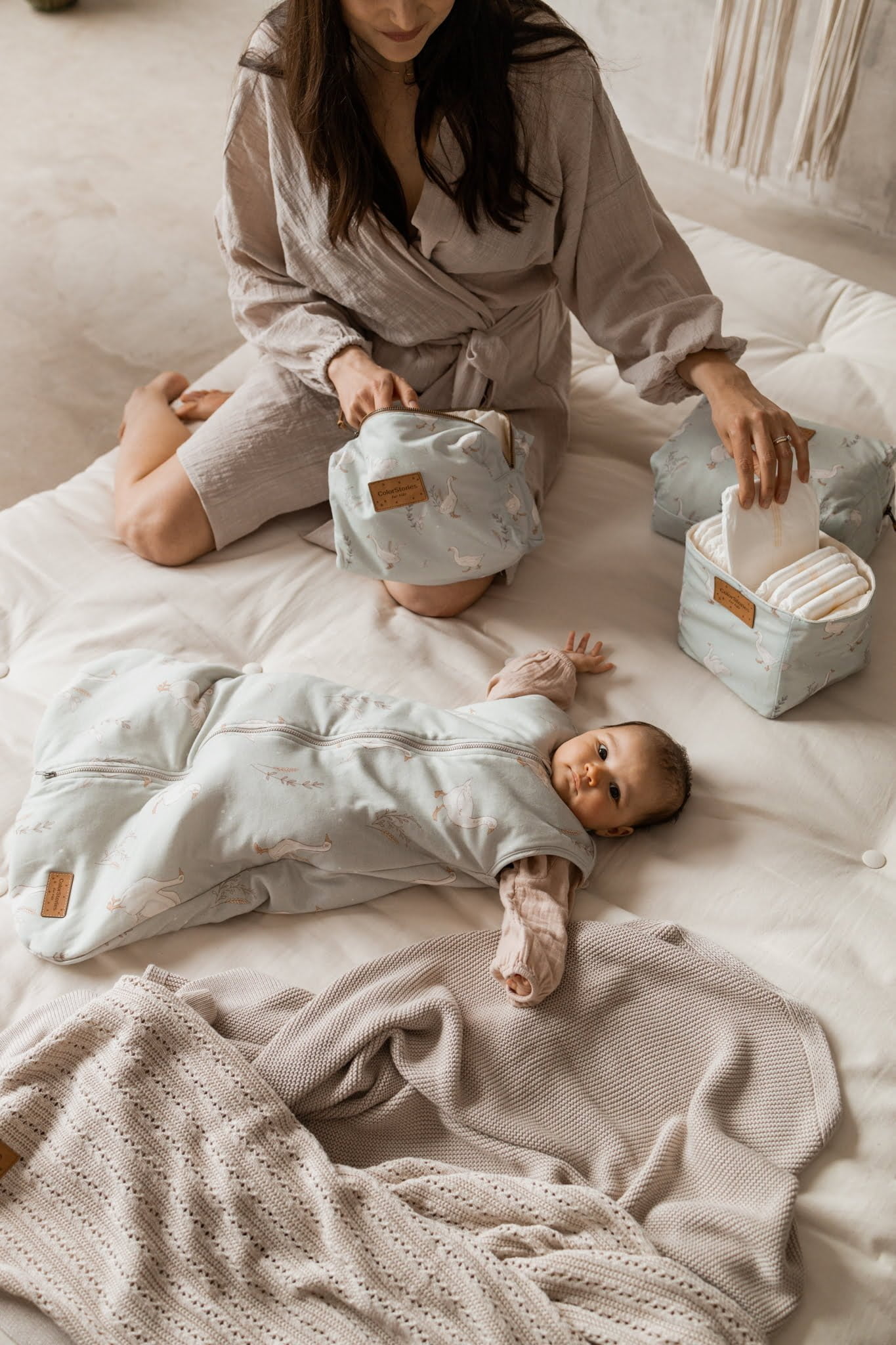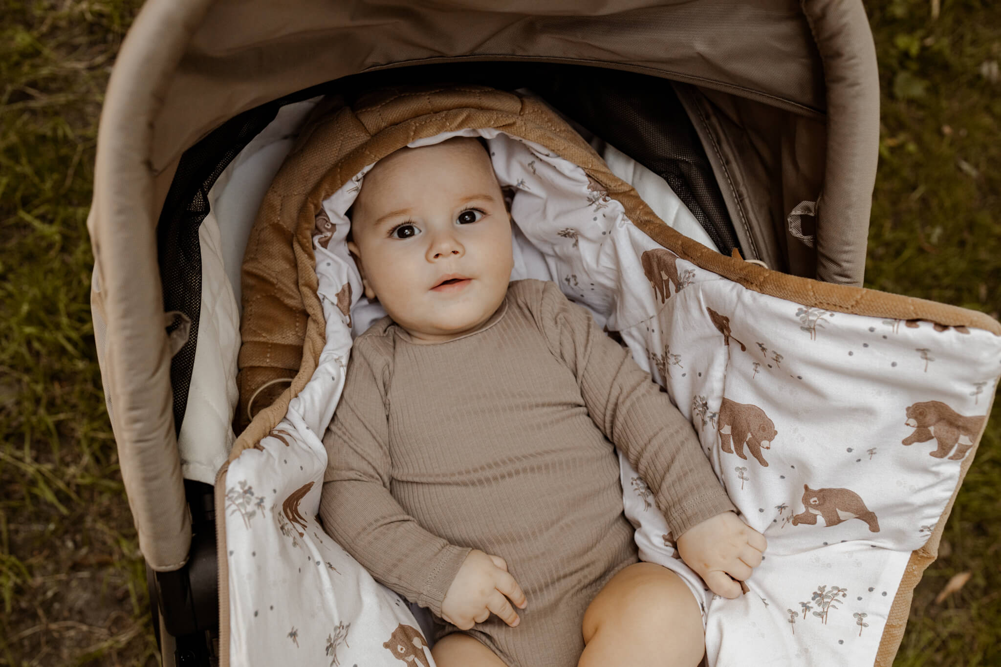 We have created our stroller sleeping bag with the youngest travelers in mind from 0 to 12 months. We have adapted the belt openings so that the sleeping bag fits not only in the carry cot, but also in the car seat and pushchair.