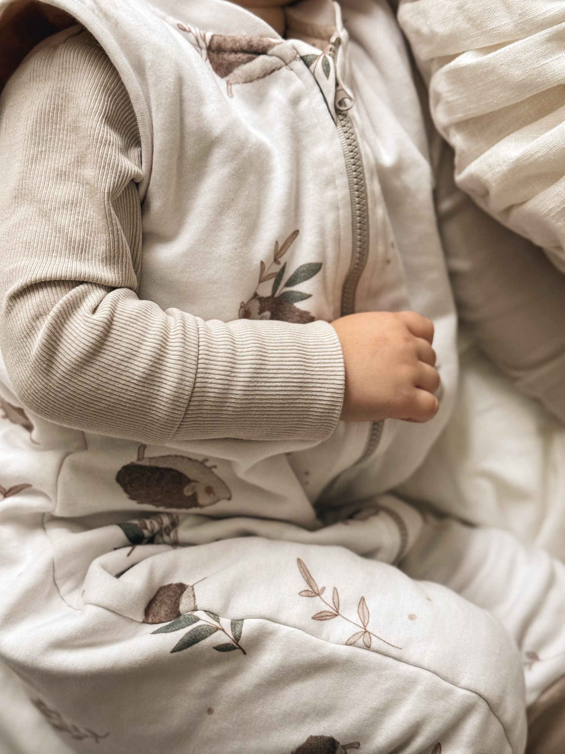 2. The unique practical design and details have been selected with the utmost care. With care and the utmost attention we have developed the unique shape of our sleeping bags for you and selected all the extras. We have taken care to ensure the right width, so that your little one can feel as comfortable as in a sleeping bag while at the same time gaining freedom for their feet. We added a practical zipper that does not contain harmful nickel.