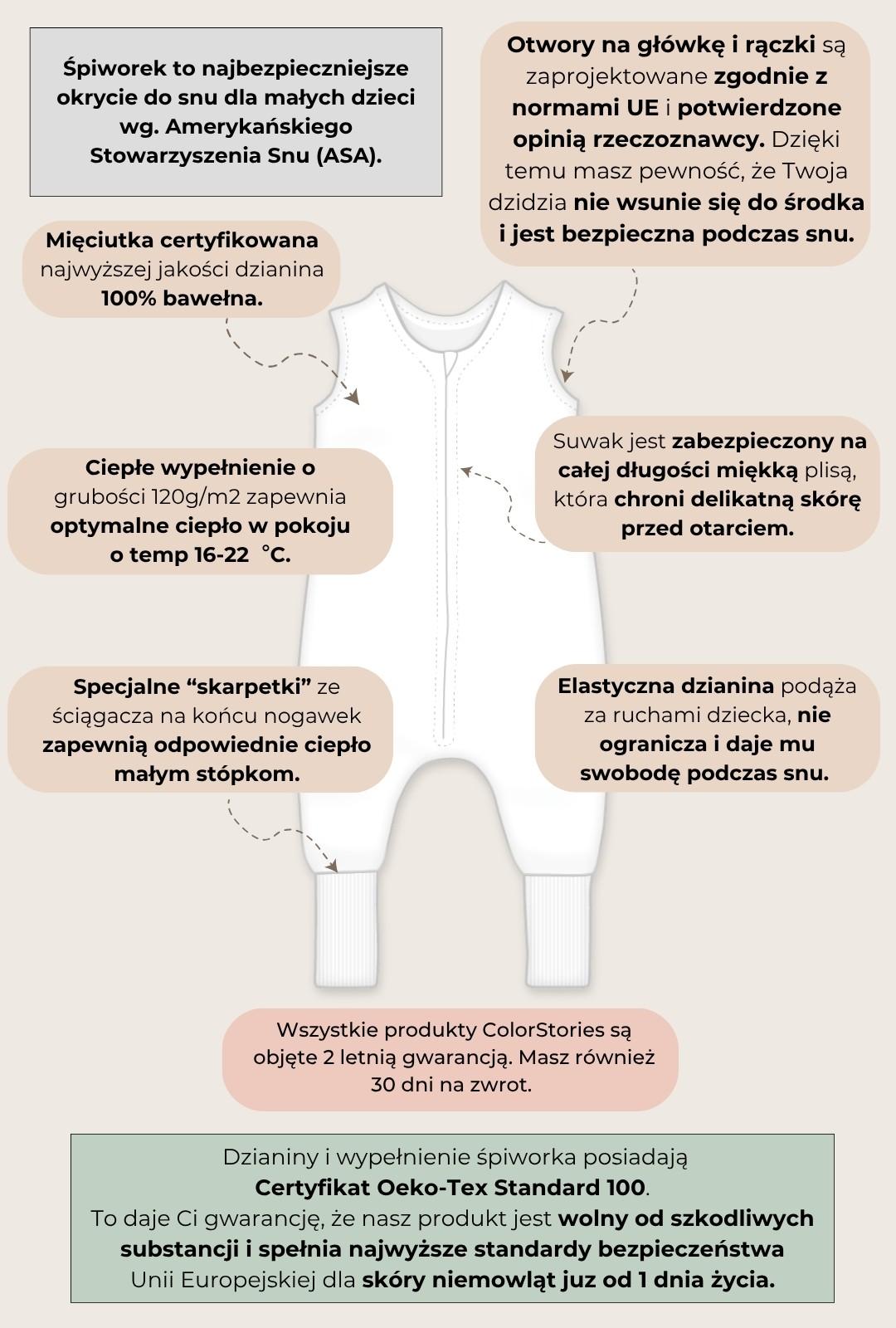 The ColorStories sleeping bag with legs is the safest and indispensable sleep cover for active toddlers! Ensure freedom of movement and proper wrapping for your little one. Discover the most important advantages of our sleeping bag with legs.