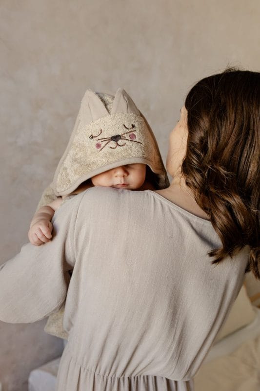 - Dzięki wysokiej chłonności, ręczniki z kapturkiem szybko osuszają skórę dziecka po kąpieli, jednocześnie zatrzymując ciepło. Kapturek chroni główkę maluszka, która jest szczególnie narażona na utratę ciepła.