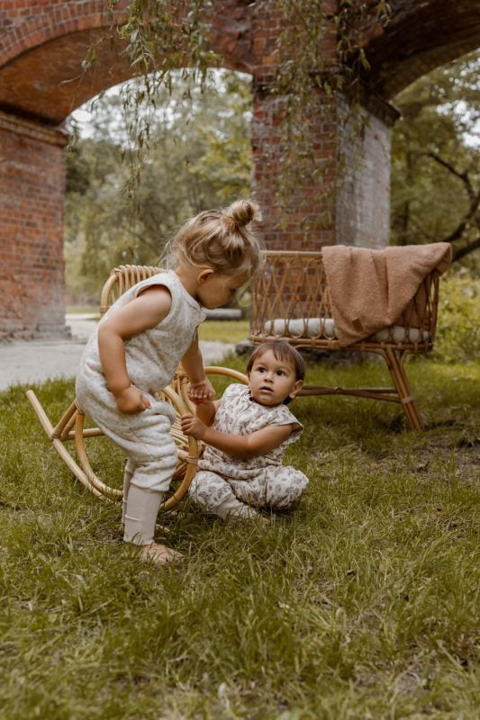 - Raczkowanie – zazwyczaj pierwsze ruchy, które dziecko wykonuje na czworakach, to przesuwanie się do tyłu. To etap, w którym maluszek jeszcze eksperymentuje z równowagą i koordynacją.