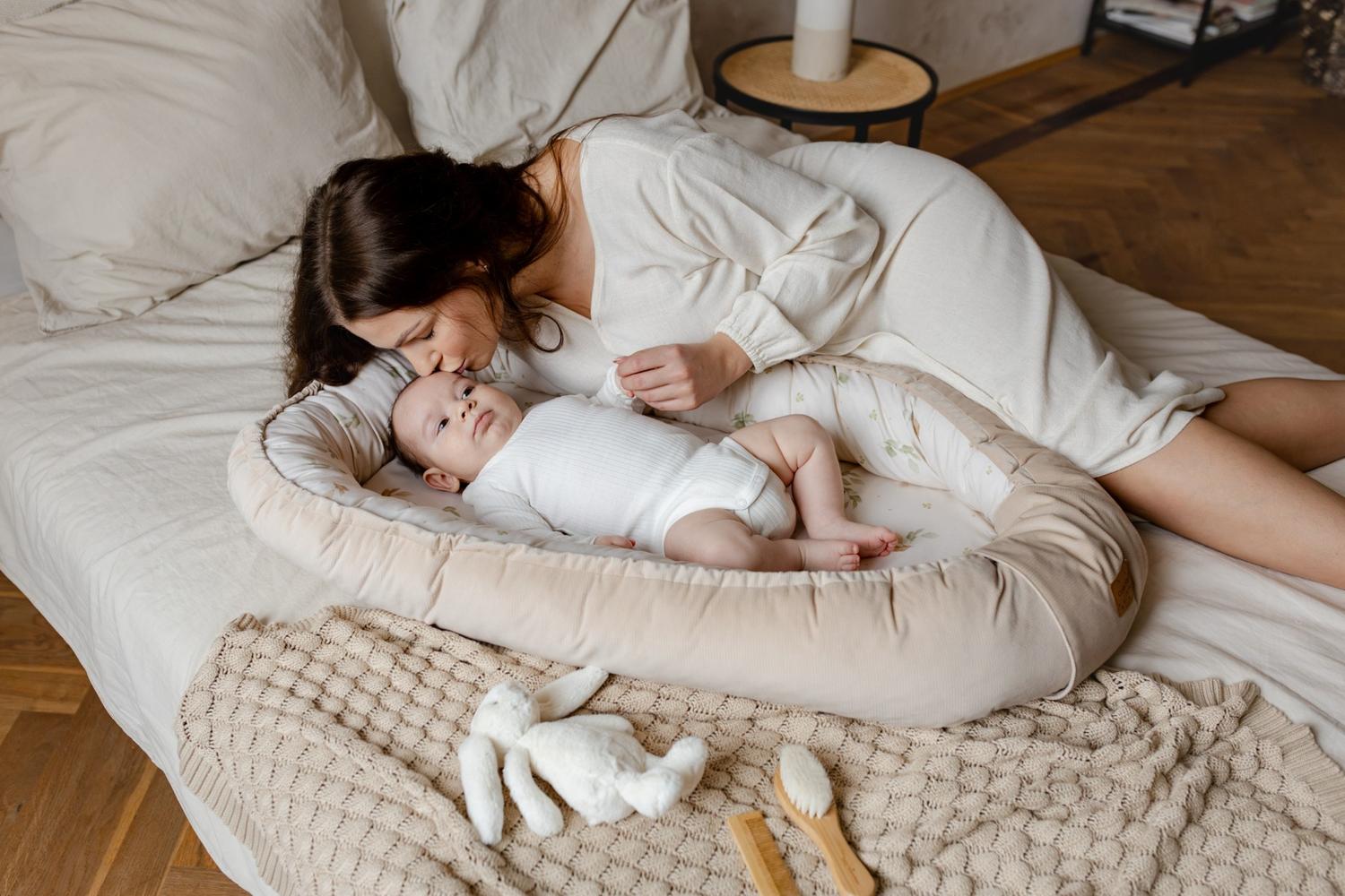 Wysokie, miękkie brzegi kokonu tworzą przytulne gniazdko, które delikatnie otula dziecko, pomagając mu się wyciszyć i poczuć bezpiecznie – tak, jak w ramionach mamy. To także naturalna bariera, która zapobiega przypadkowemu sturlaniu się niemowlęcia z powierzchni, na której odpoczywa.
