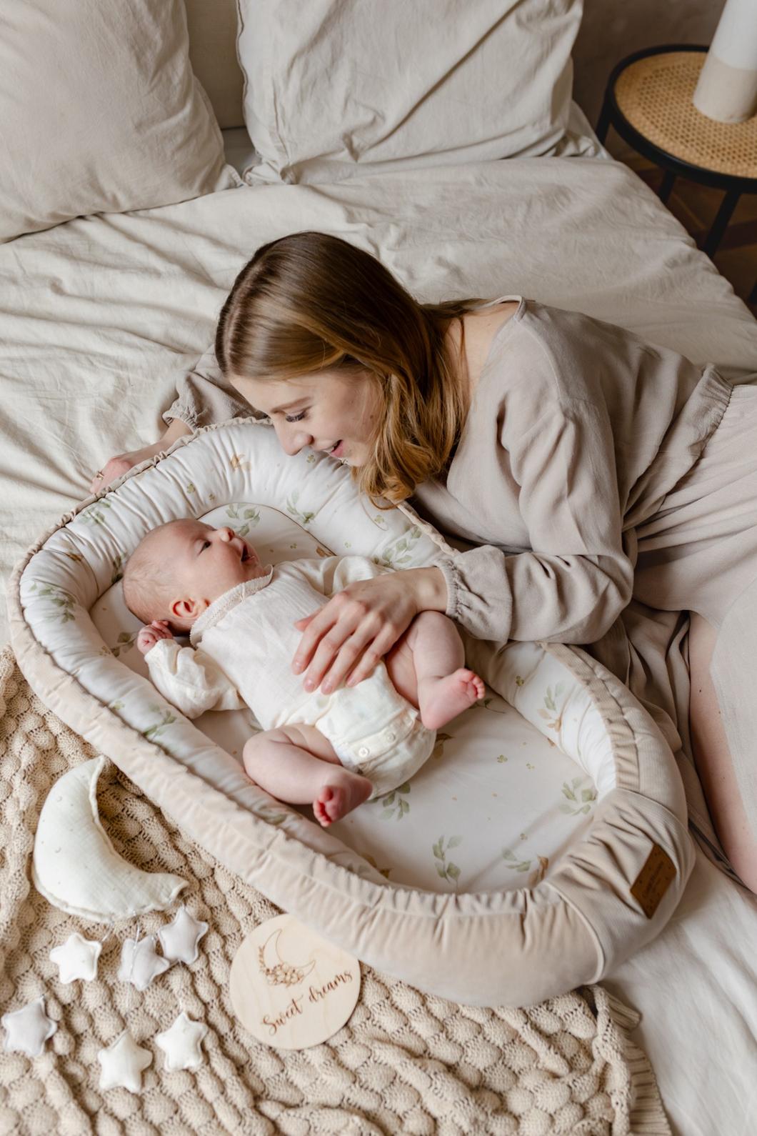 Dziecko przez dziewięć miesięcy przebywało w ciasnym, bezpiecznym środowisku. Kokon do spania nawiązuje do tego doświadczenia, otulając maluszka miękkimi brzegami i dając mu poczucie bliskości.