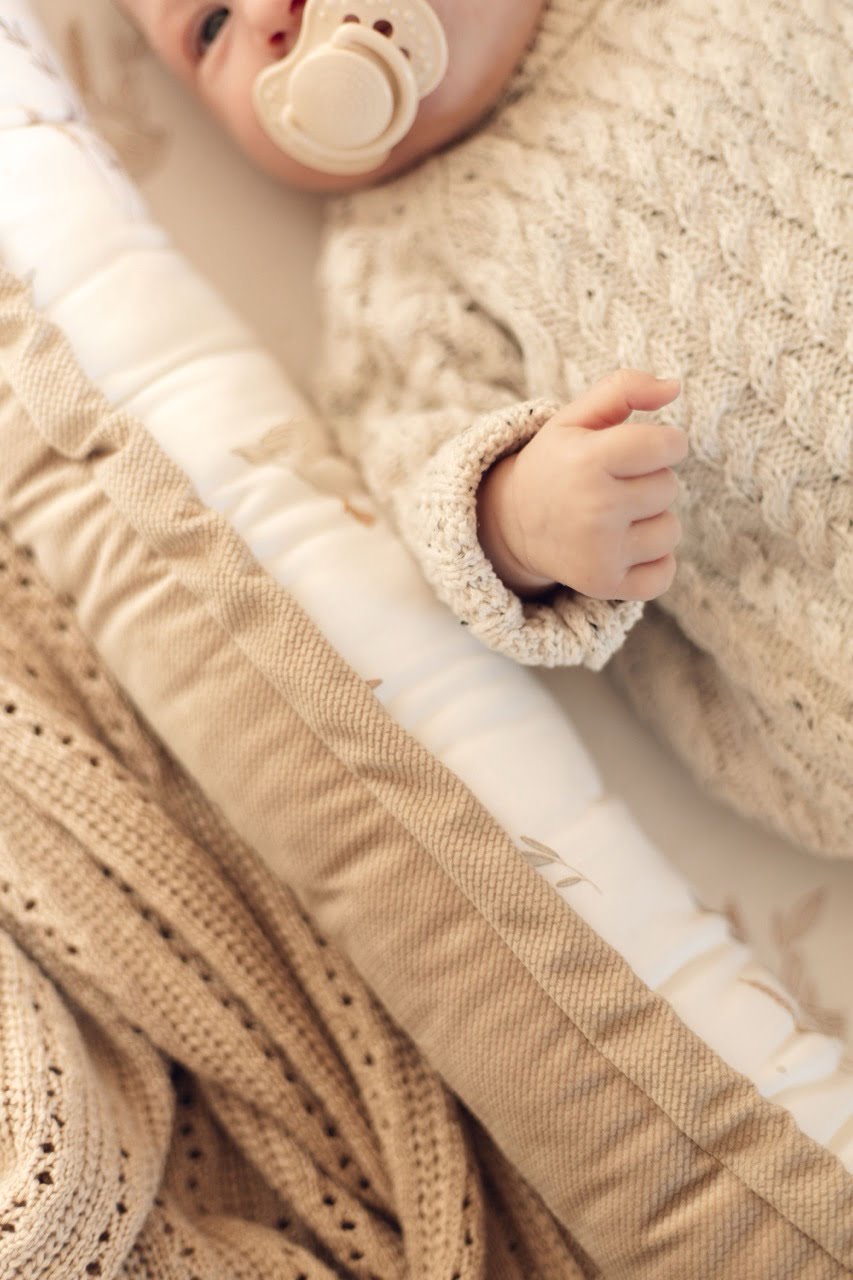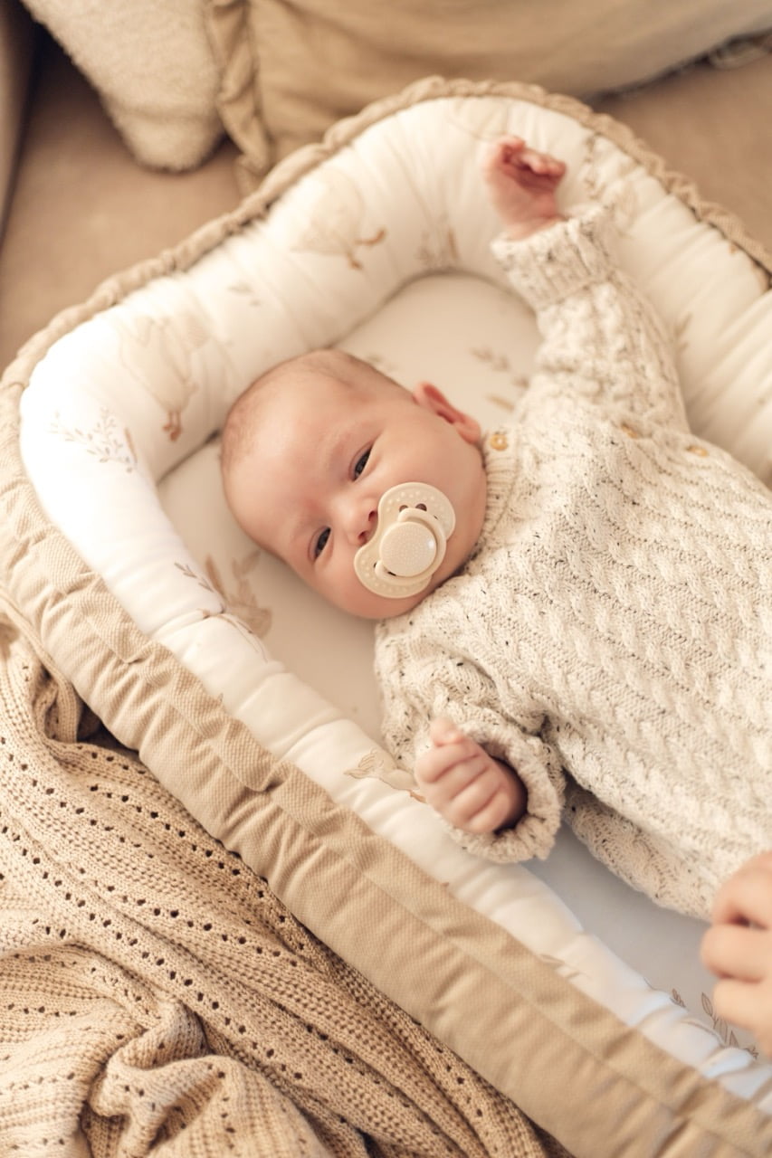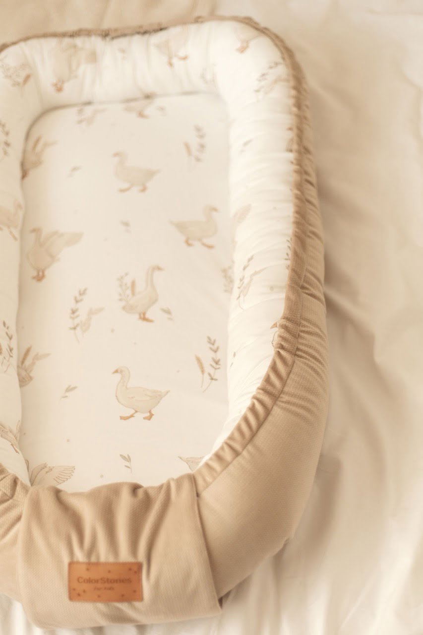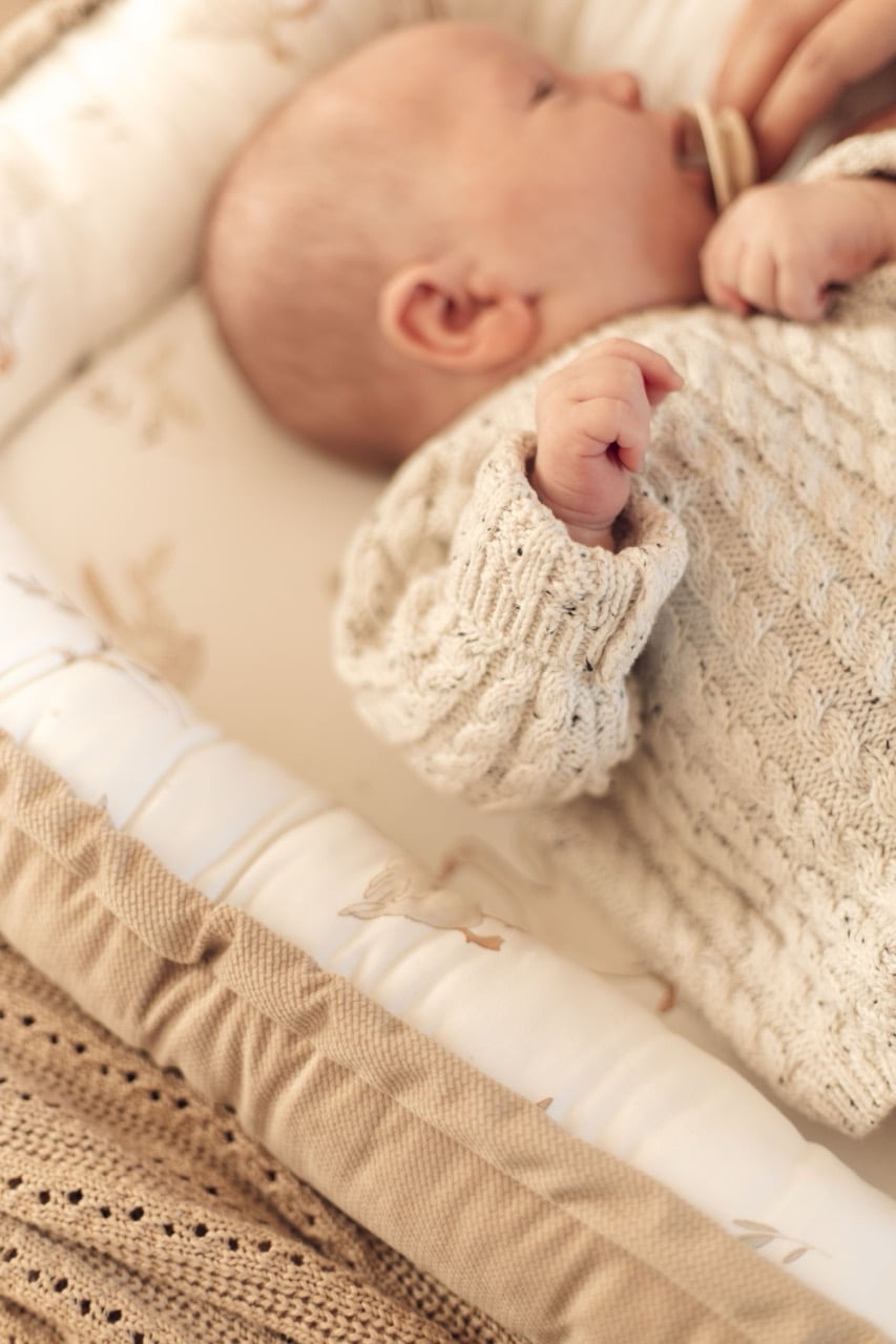 Dziecko przez dziewięć miesięcy przebywało w ciasnym, bezpiecznym środowisku. Kokon do spania nawiązuje do tego doświadczenia, otulając maluszka miękkimi brzegami i dając mu poczucie bliskości.