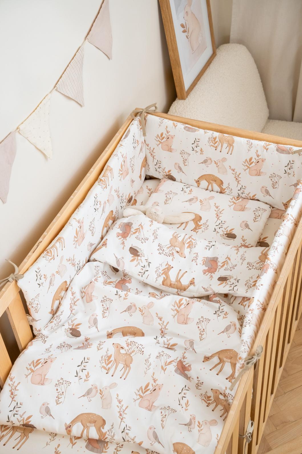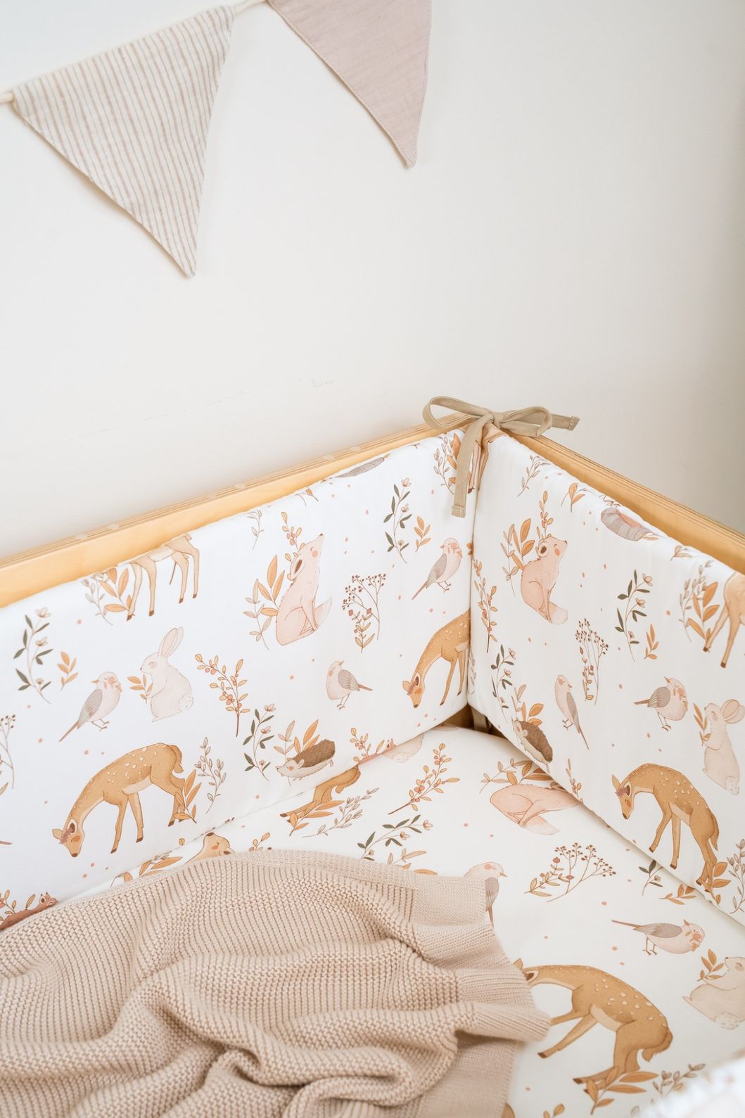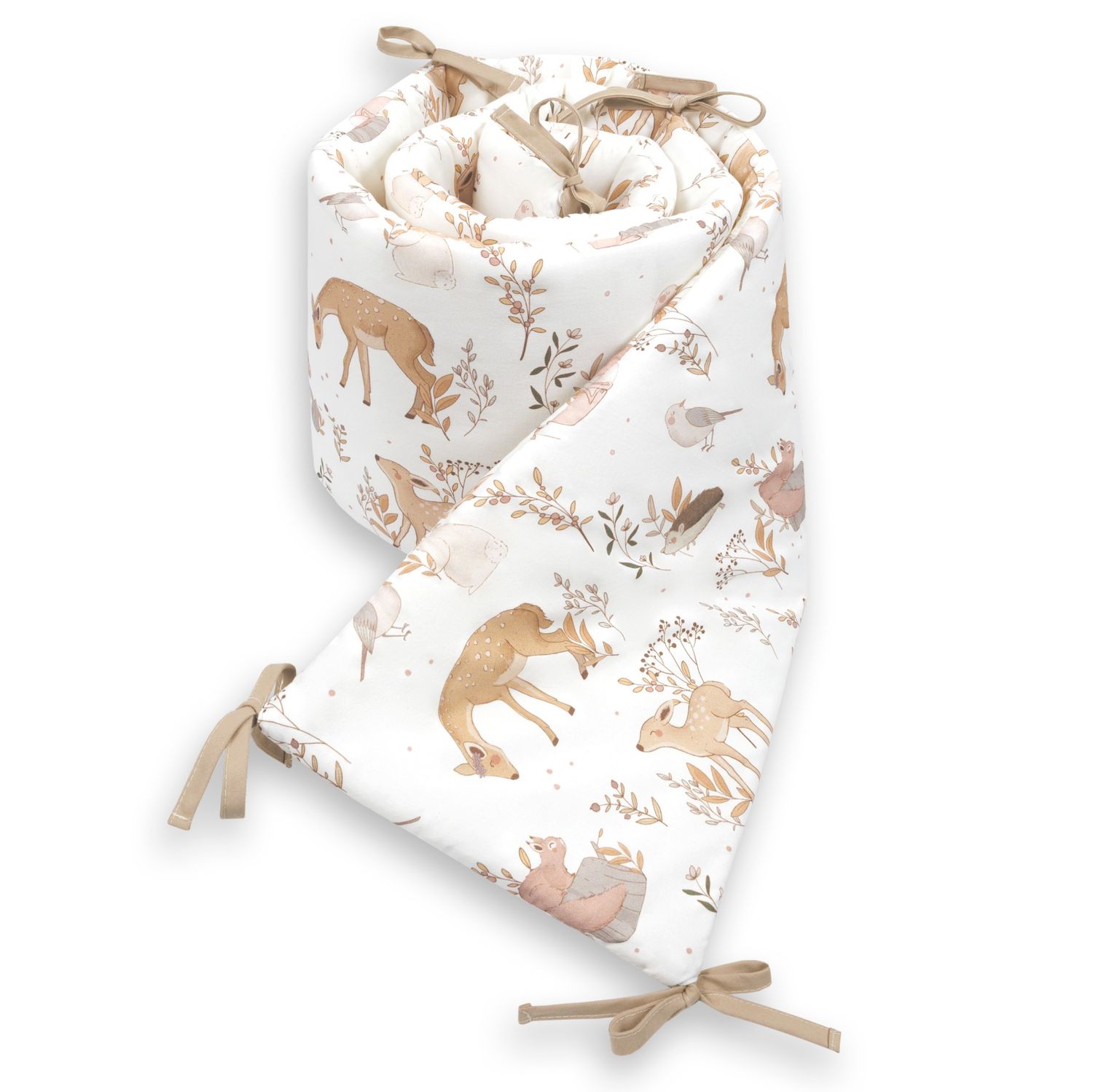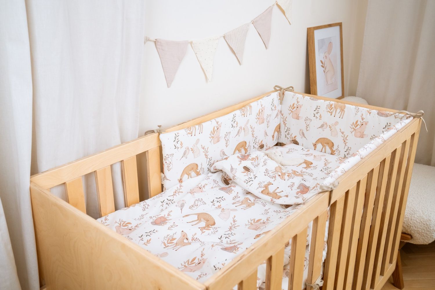 I nie zapominajmy o designie. Po obu stronach ochraniacza na szczebelki znajdziesz subtelne, ponadczasowe i autorskie wzory, które pięknie uzupełnią wyprawkę i sprawią, że ochraniacz stanie się prawdziwą ozdobą pokoju dziecięcego.
