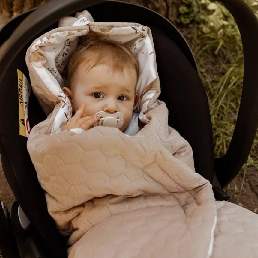 Zapewnij swojemu maleństwu komfort i bezpieczeństwo podczas każdej podróży z naszym otulaczem do fotelika samochodowego. Stworzony z myślą o delikatnej skórze maluszka, nasz otulacz łączy w sobie miękkość, funkcjonalność i naturalne materiały. Niezależnie od pogody, otuli Twoje maleństwo ciepłem, jednocześnie gwarantując odpowiednią cyrkulację powietrza, co zapobiega przegrzaniu. Spraw, aby każda podróż była spokojna i pełna ciepła – od pierwszych dni życia.