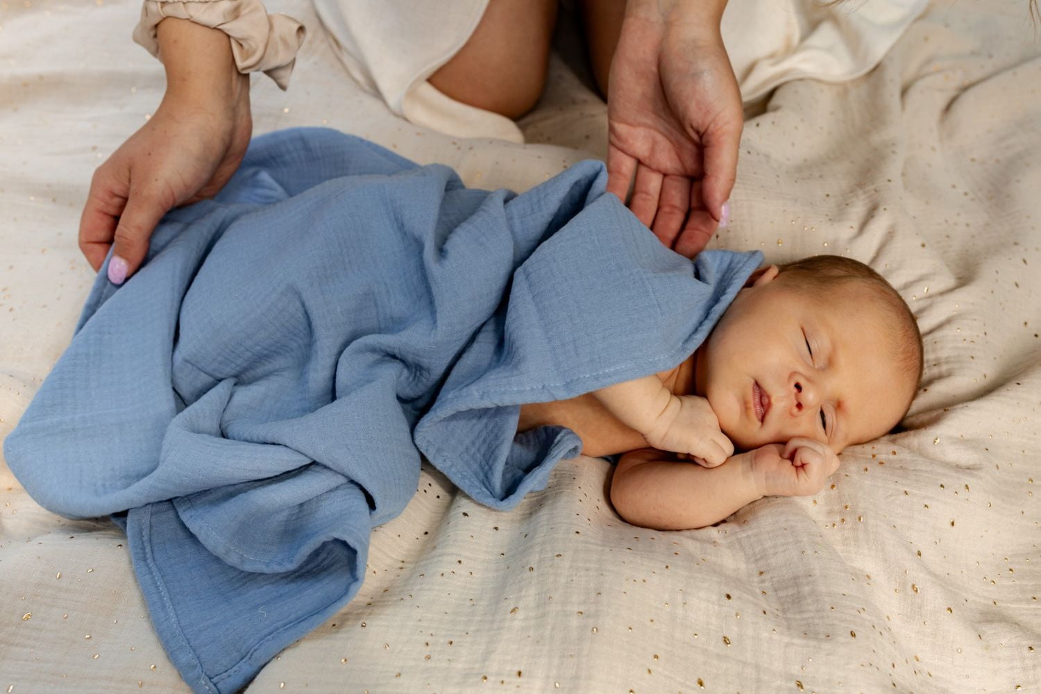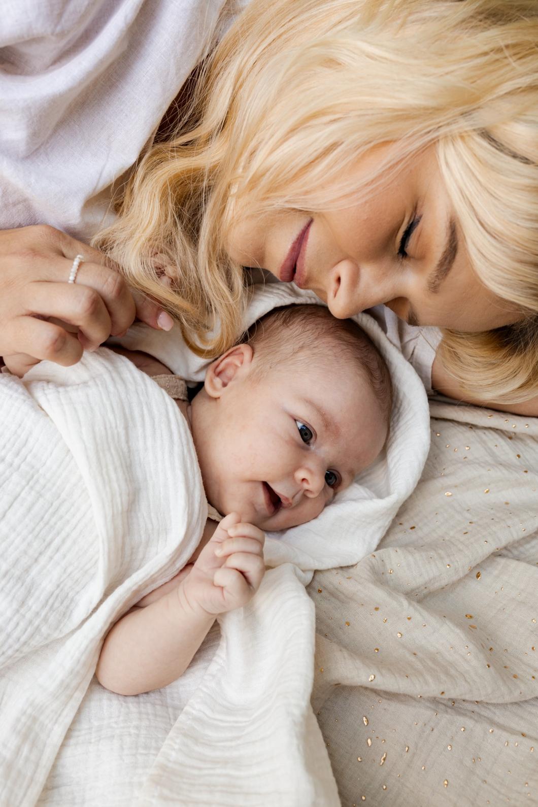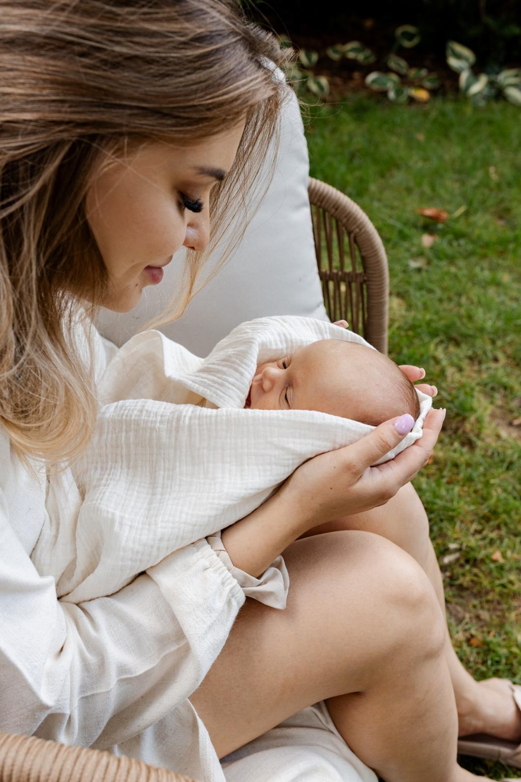 Po porodzie jednym z najpopularniejszych sposobów otulenia noworodka jest zawijanie go w tzw. “rożek” lub otulacz. Nie każde maleństwo lubi ciasne otulenie. W takim wypadku świetnie sprawdzi się kocyk muślinowy. Jest też doskonałym naturalnym przykryciem, gdy będziesz tuliła swojego maluszka po porodzie „skóra do skóry”.