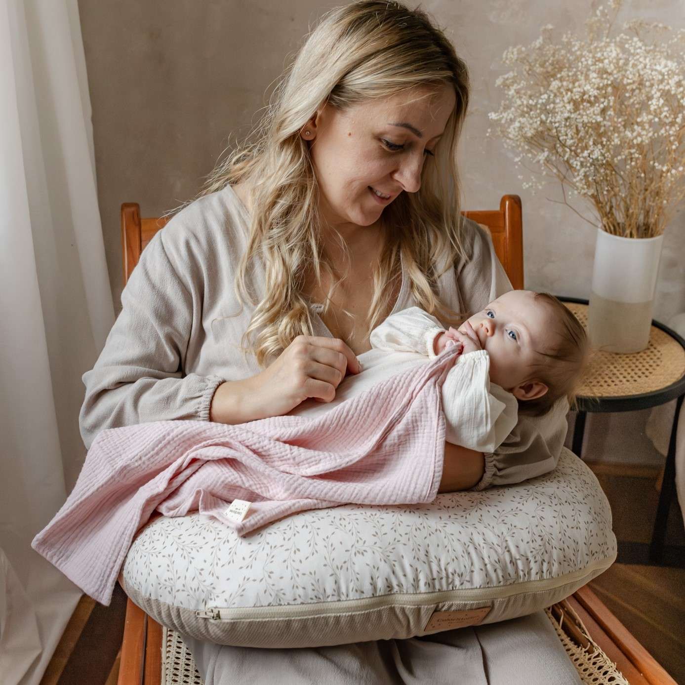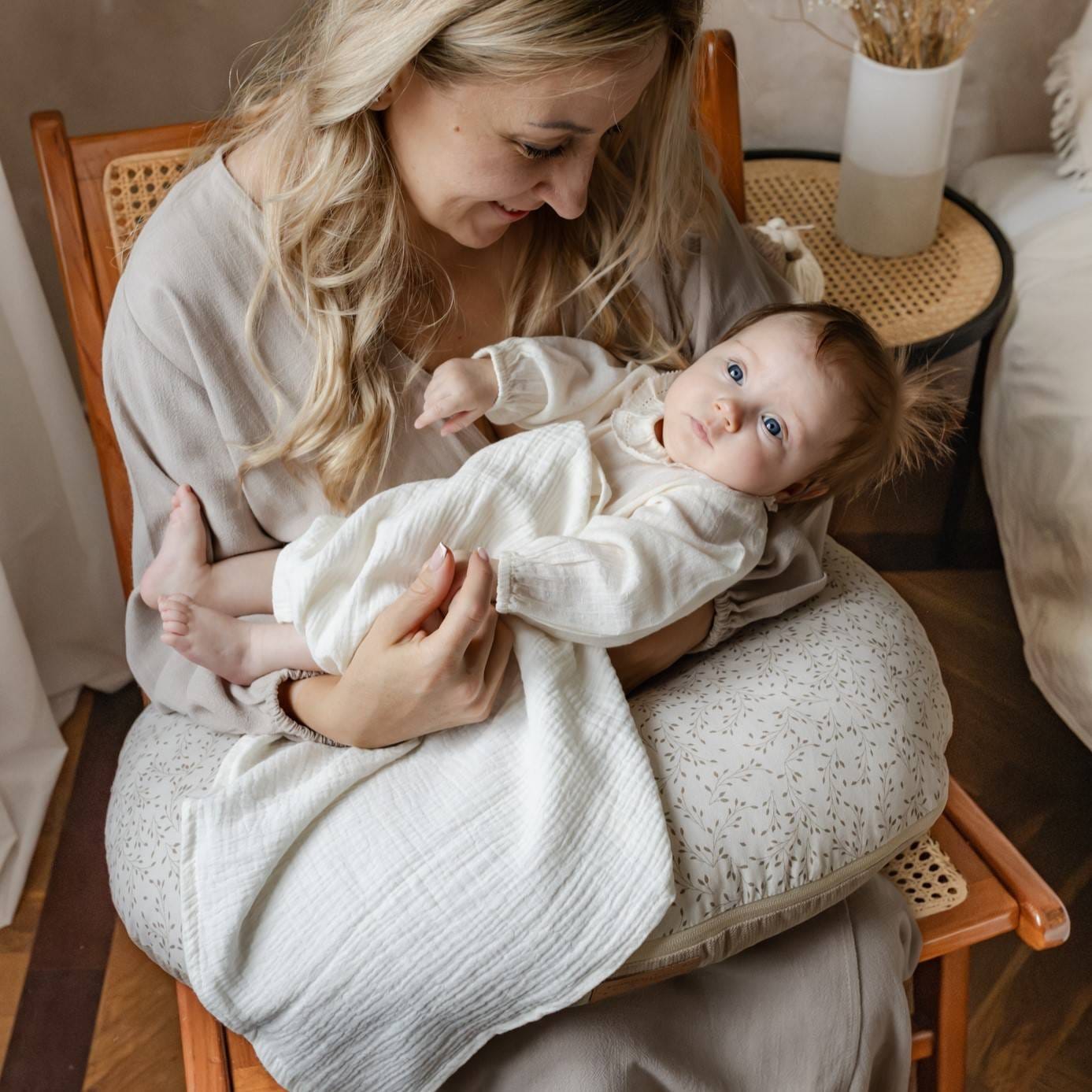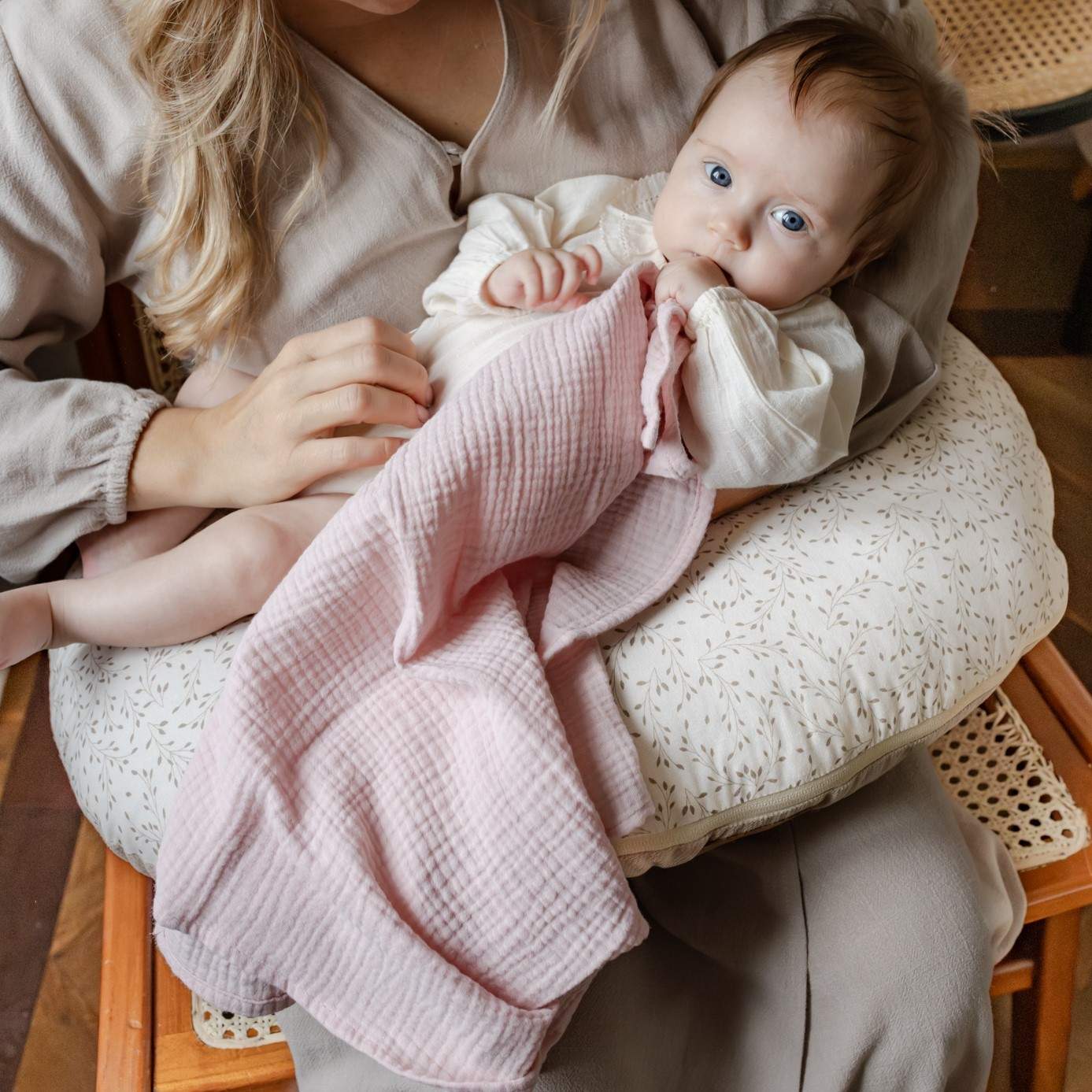 Muślin to lekka, luźno tkana tkanina, która łatwo się marszczy, zwłaszcza po praniu. Gniecenie się muślinu dodaje mu uroku i naturalności. Muślin to świetne rozwiązanie dla zmęczonej mamy. Jeśli chcesz możesz, ale nie musisz prasować muślinu jeśli się pogniecie.