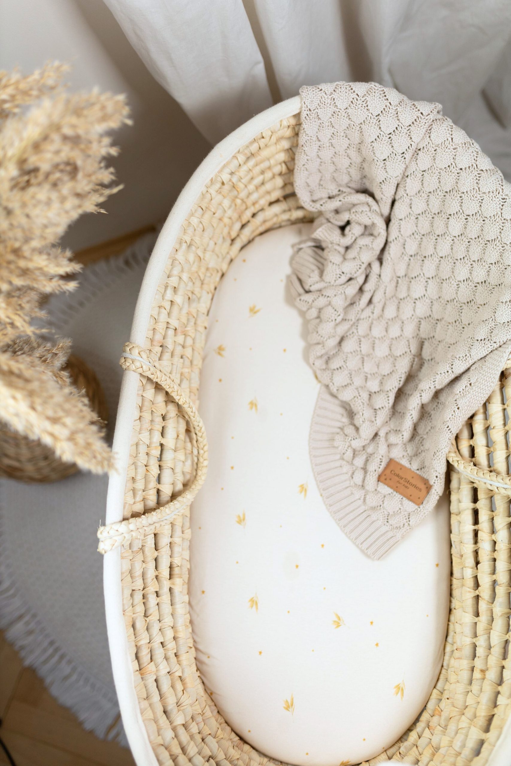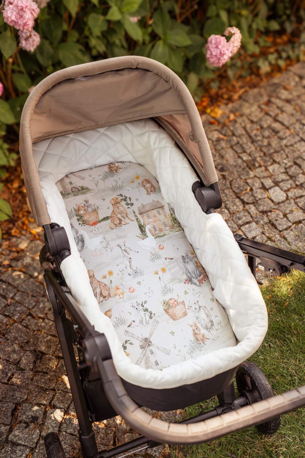 Prześcieradło do gondoli – naturalna miękka jak chmurka 100% bawełna, która dba o zdrowie i komfort Twojego maluszka! Poznaj nasze antyalergiczne, mięciutkie, bawełniane prześcieradło do gondoli, idealne dla Twojego dziecka! Jego aksamitne wykończenie, naturalne właściwości przyjazne dla skóry dzieci, design i trwałość Was zachwycą. Możesz mieć pewność, że Twoje dziecko będzie spać na delikatnym i naturalnym materiale, który zapewni mu maksymalny komfort.