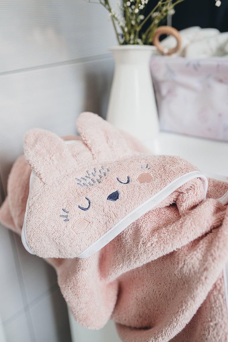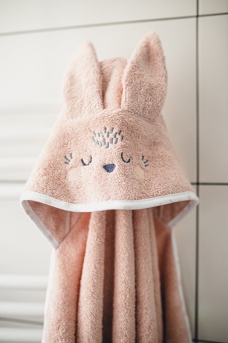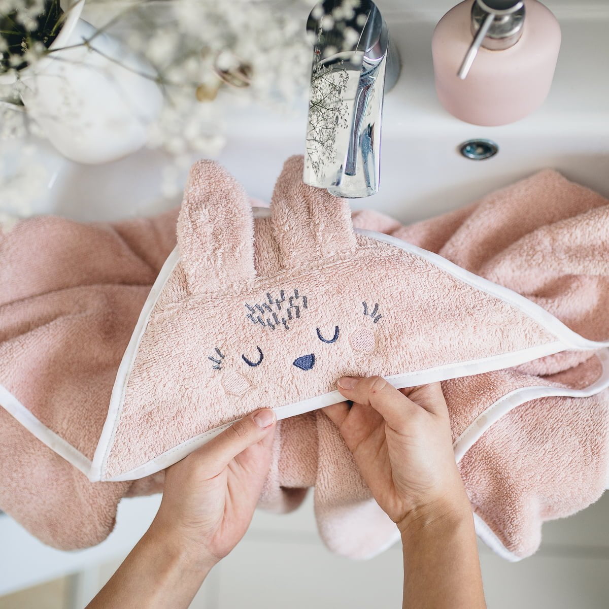 Ręcznik dla dziecka z kapturkiem 70×125 cm Królik Duży pudrowy róż Forest Friends