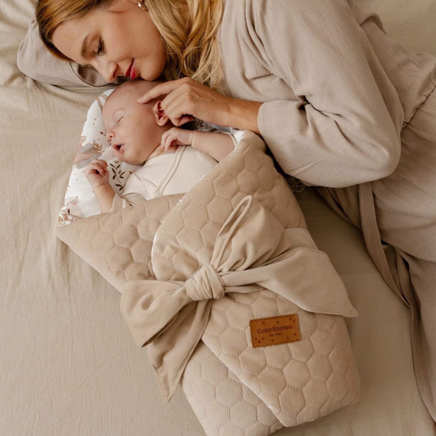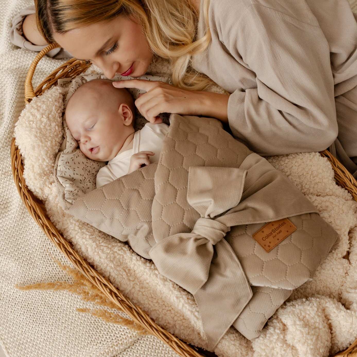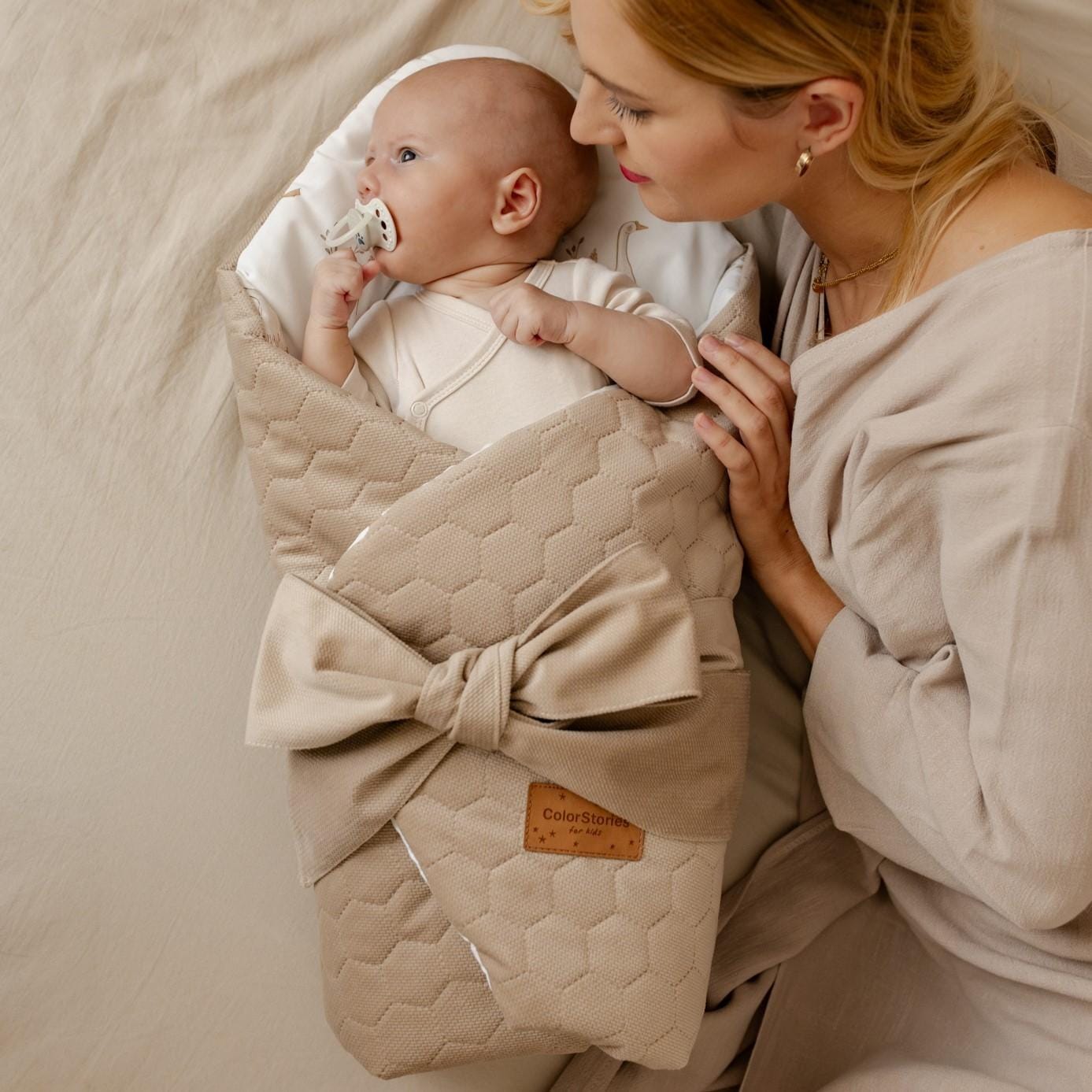 Każda mama wie, jak ważne jest, aby noworodek zaraz po urodzeniu miał zapewnione przytulne ciepło i poczucie bezpieczeństwa. Rożek niemowlęcy ColorStories jest wiązany na kokardę i idealnie spełnia się w tej roli! Dzięki temu rozwiązaniu możesz dostosować otulenie do potrzeb Twojego maluszka. To pozwoli Twojemu maleństwu poczuć się bezpiecznie, co z kolei przyczyni się do spokojnego snu.