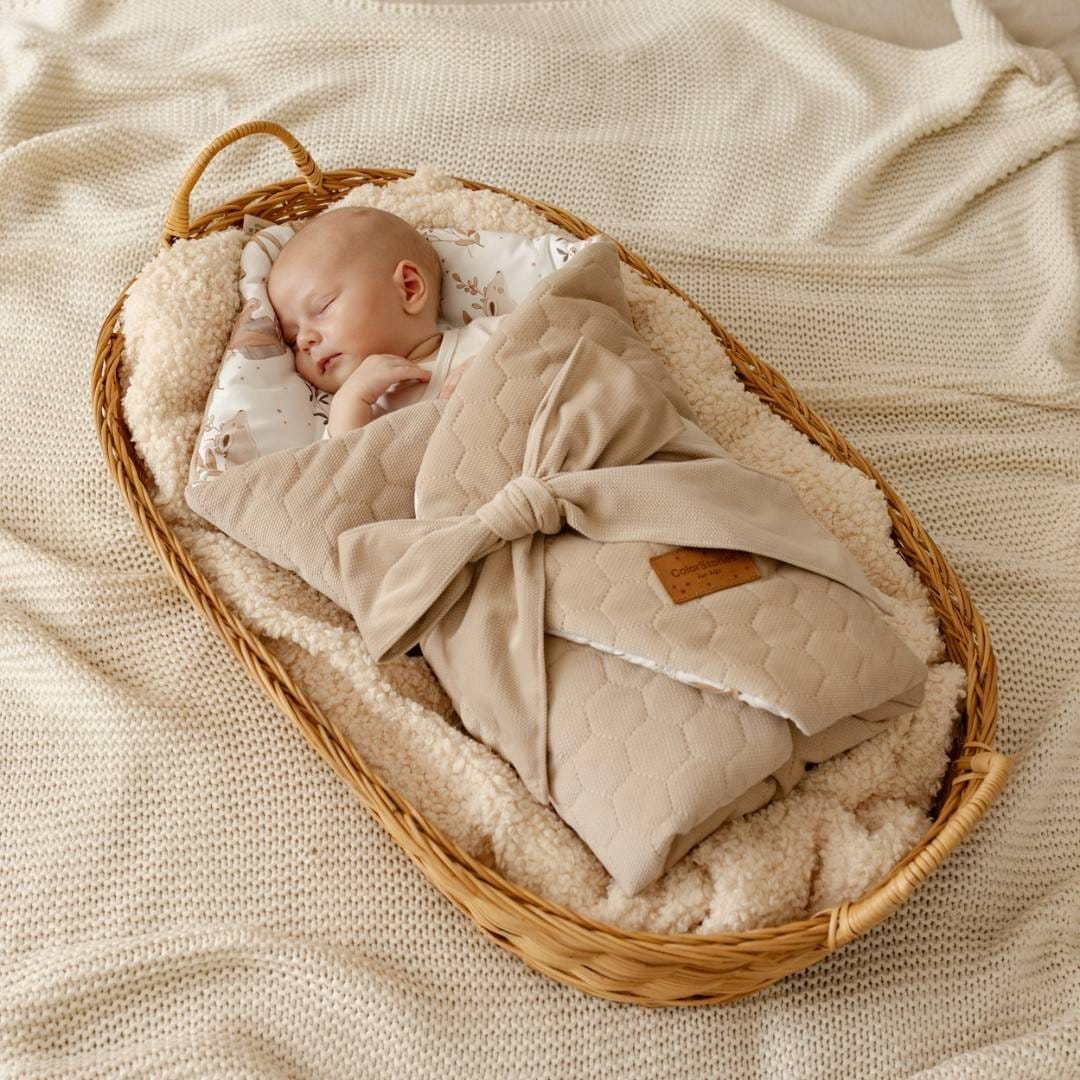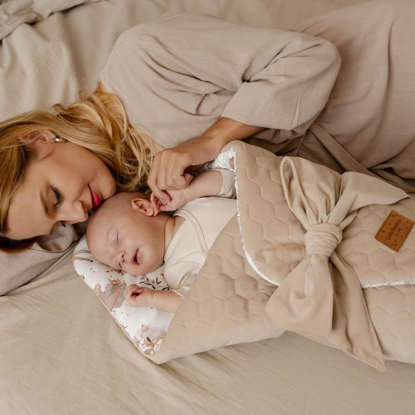 Każda mama wie, jak ważne jest, aby noworodek zaraz po urodzeniu miał zapewnione przytulne ciepło i poczucie bezpieczeństwa. Rożek niemowlęcy ColorStories jest wiązany na kokardę i idealnie spełnia się w tej roli! Dzięki temu rozwiązaniu możesz dostosować otulenie do potrzeb Twojego maluszka. To pozwoli Twojemu maleństwu poczuć się bezpiecznie, co z kolei przyczyni się do spokojnego snu.