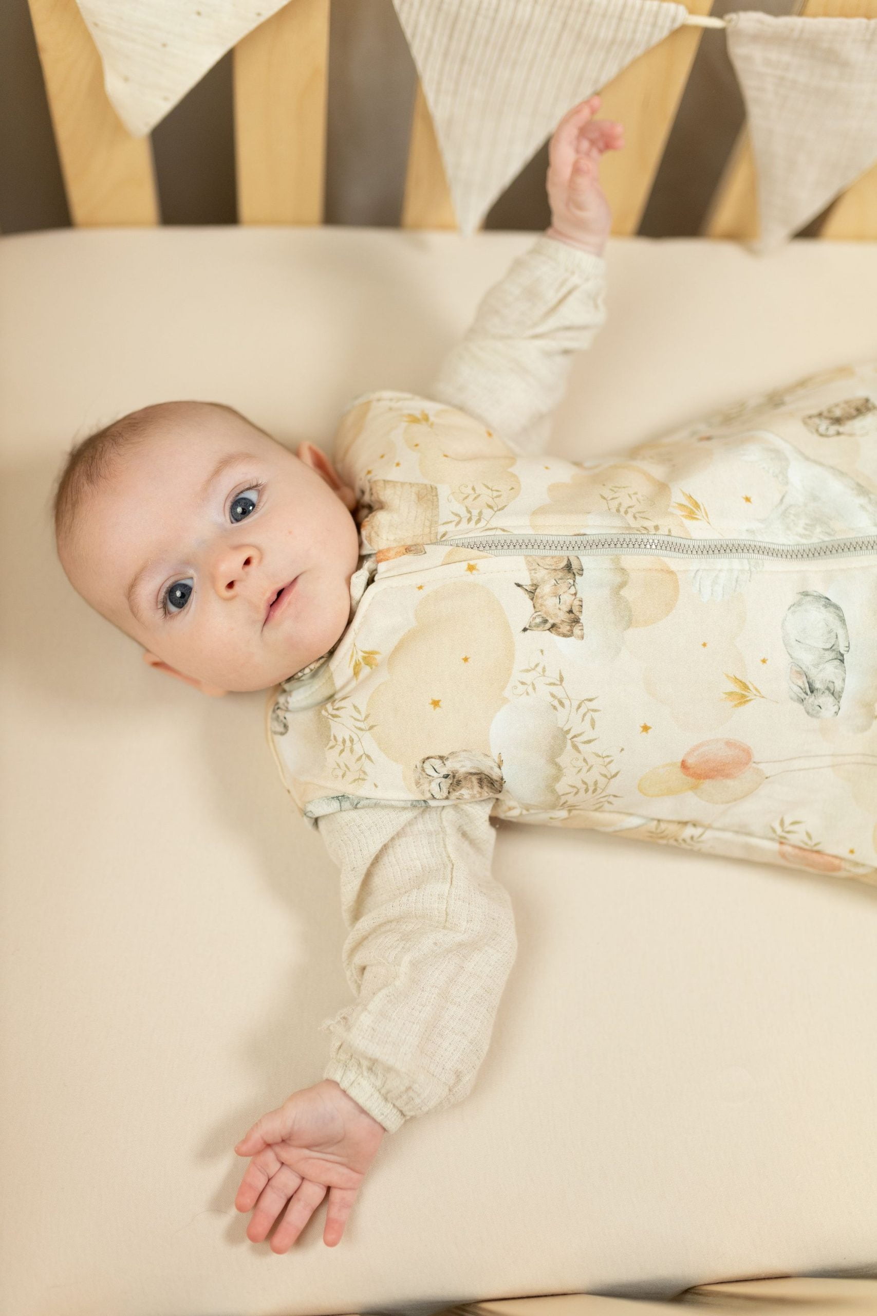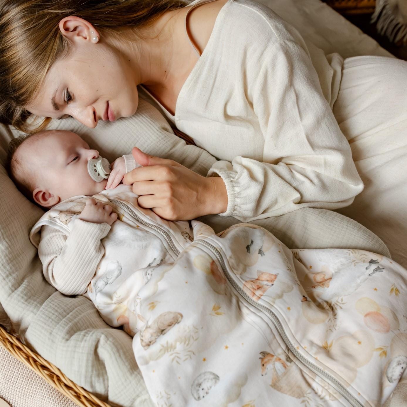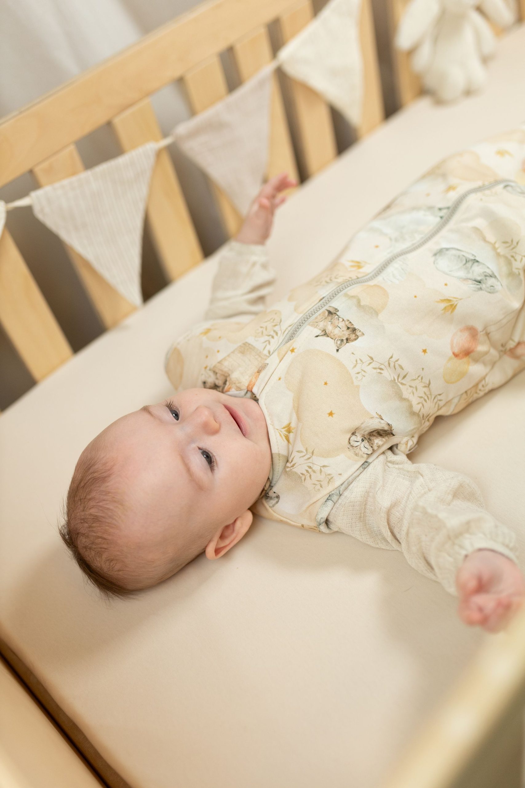 • Oddychająca bawełna: Zapewnia, że skóra Twojego maluszka pozostaje sucha i jest chroniona przed przegrzaniem przez całą noc.