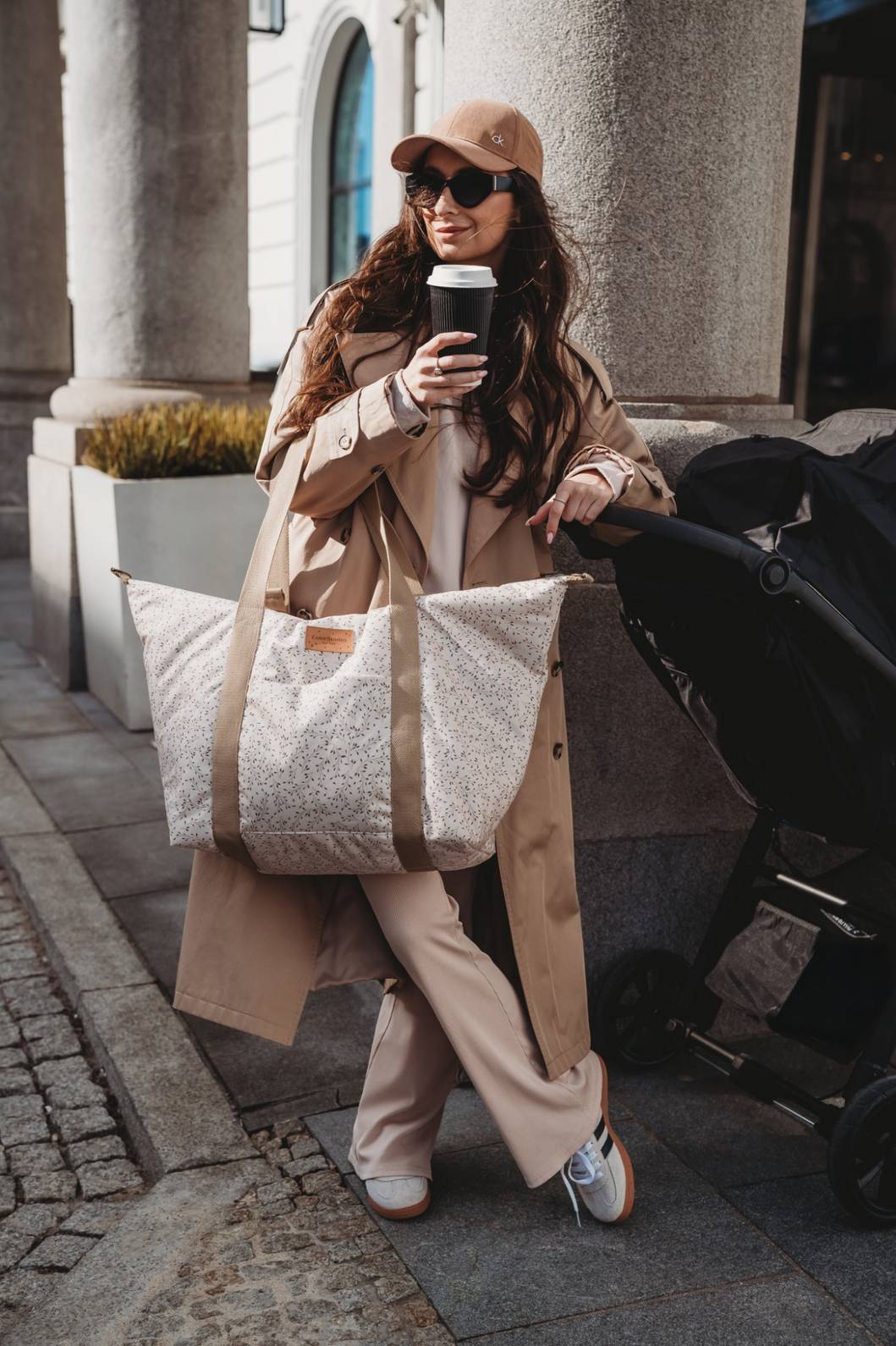Dzięki swojej pojemności i eleganckiemu wyglądowi sprawdzi się również po okresie niemowlęcym – jako torba na akcesoria dla dziecka, shopperka na zakupy, a nawet torba na fitness czy weekendowy wyjazd. Bez względu na okazję torba jest wygodna, dobrze wyważona i zaprojektowana tak, by nie krępować ruchów. Jej przemyślana forma sprawia, że zawsze wygląda elegancko i pasuje do każdej sytuacji – od codziennych spacerów, przez spotkania z przyjaciółmi, aż po aktywne chwile na siłowni.